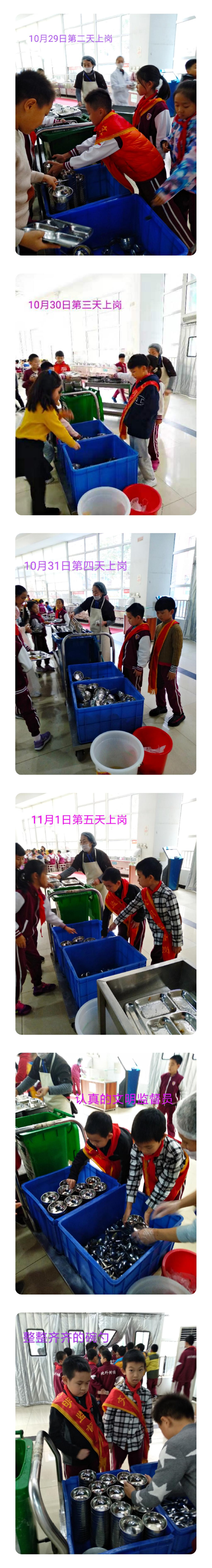 为了培养三年级学生餐后文明收餐盘的好习惯,从10月起宿管中心组织了餐后文明监督岗活动。