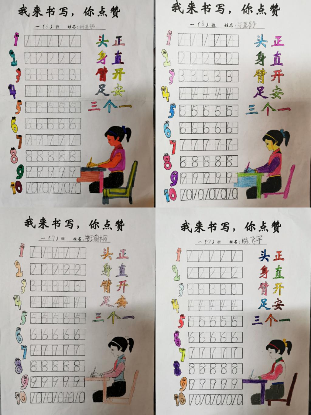 经过激烈的角逐,最终每班评选出优秀作品若干。获奖的孩子们开心满满,他们感受着成功的喜悦,自我效能感得到提升,在未来的学习中他们会更加自信,走得更远。好习惯成就一生,此次书写大赛为孩子们创设了一个展示自我的平台,彰显了一年级学生积极自信、斗志昂扬的风采。这不仅唤起了孩子们对数字书写的浓厚兴趣,同时为今后正确、规范地书写数字,养成良好的书写习惯打下了坚实的基础。