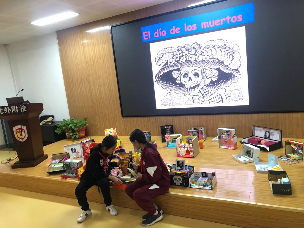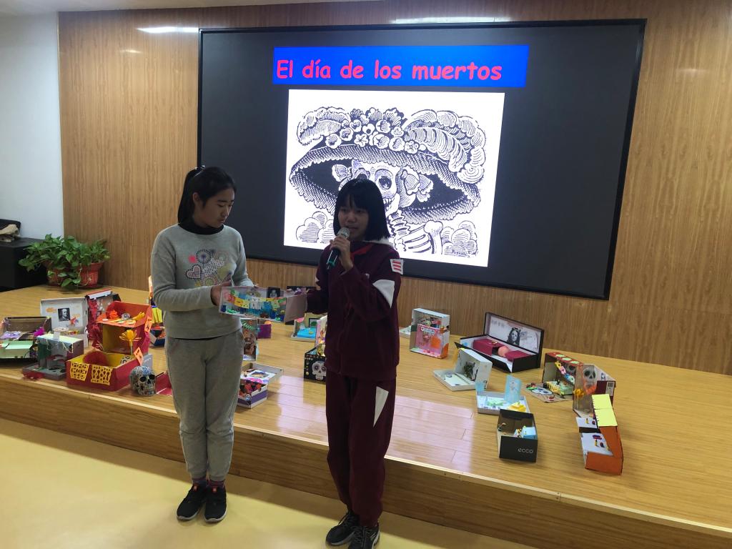 此次活动在我校一阶举办。西语班的学生可以选择纪念已逝去的名人、歌手、演员、宠物等制作祭坛模型,通过口语初赛、复赛介绍独特的墨西哥节日,并评出一等奖、二等奖、三等奖。通过本次活动,西语班的同学们体会到了不一样的亡灵节文化,同时提高了学习西语的兴趣。