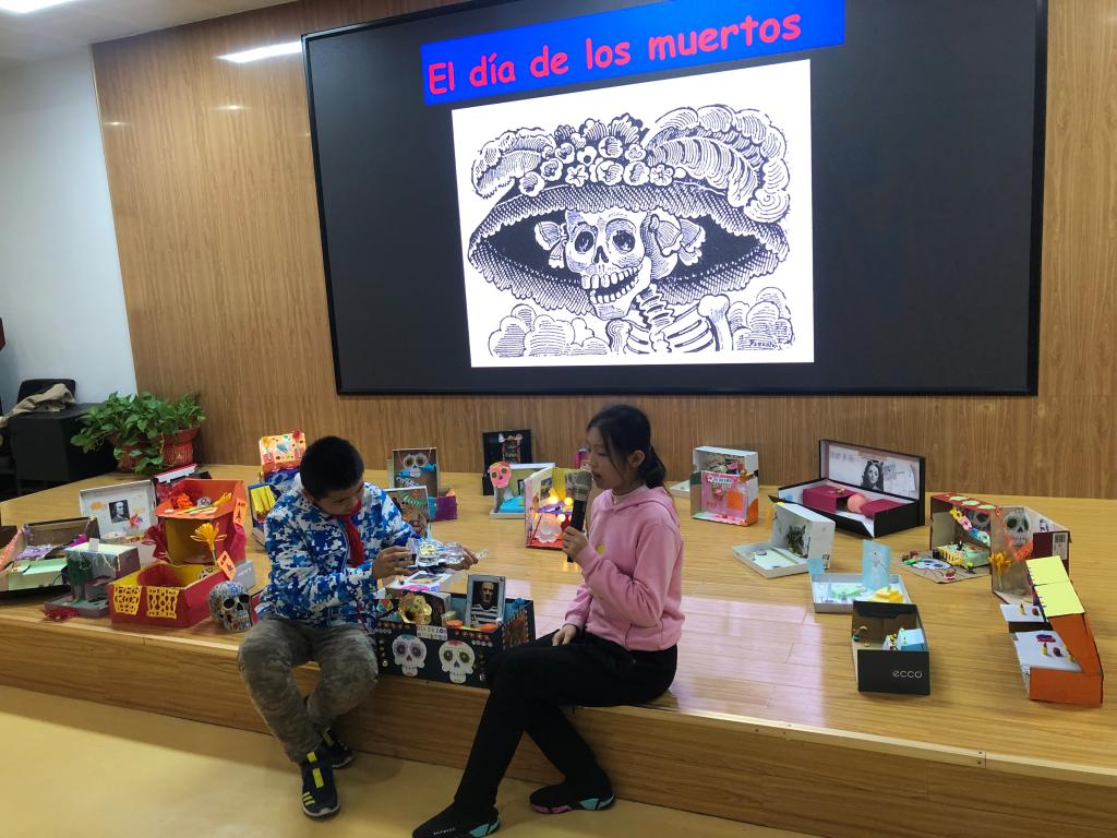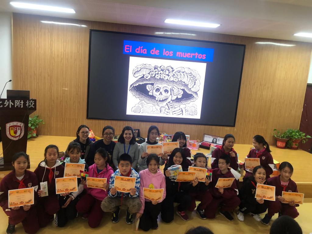 我校初中西语组为了让学生们更加生动地了解和感受墨西哥亡灵节文化,组织小学六年级同学们举办了以“Feliz Día de Los Muertos”为主题的系列活动。亡灵节(Día de los muertos)是墨西哥独具特色的节日——每年的10月31日至11月2日,墨西哥人民纪念逝去亲人,进行祭奠活动的节日。