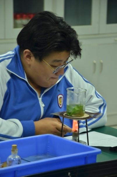 化学的实验体验是在11月14日完成的,内容分为两个:“检测紫甘蓝酸碱性”、“叶脉书签”。对于化学实验感兴趣的同学们用自己所学的知识加上老师的协助很成功的完成了实验,并得出正确的结果。化学反应千变万化,有许多让同学们眼花缭乱的神奇现象,而同学们在这次实验中不仅有自己的思考和感悟,也感受到自己的平时生活变得多姿多彩。