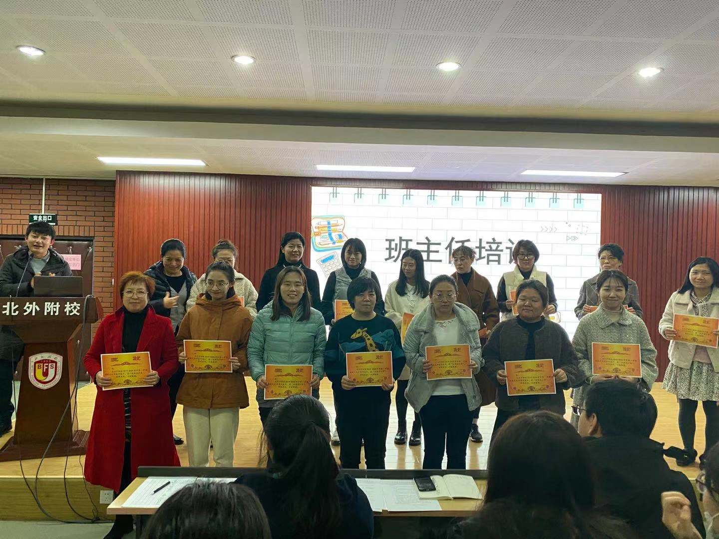 孙亚楠公布了本学期在班级文化建设方面获奖的班级,李琳为获奖班主任颁发奖状。