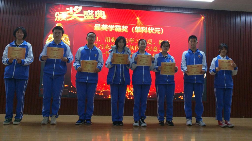 杨继臻主任代表北外附校感谢宣讲团带来的这场丰富的精神盛宴,并宣布此次宣讲活动圆满结束。同学们用掌声对宣讲团的老师们致谢。随后,高一年级召开期中考试总结表彰大会,杨继臻主持了表彰大会,并和班主任老师、任课教师依次颁发了最美学霸奖、班级学习楷模奖、单科状元奖和班级表现突出之星奖。此次获奖的有高一(1)班冯浩洋、(2)班王依雯、(3)班黄馨瑶、(4)班李思睿、(5)班田雨淇和(6)班樊树衡等50多位同学,这些同学依次上台领奖并和颁奖老师合影留念。