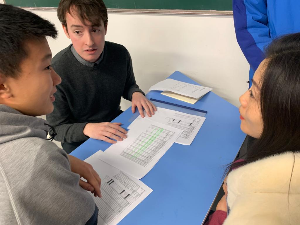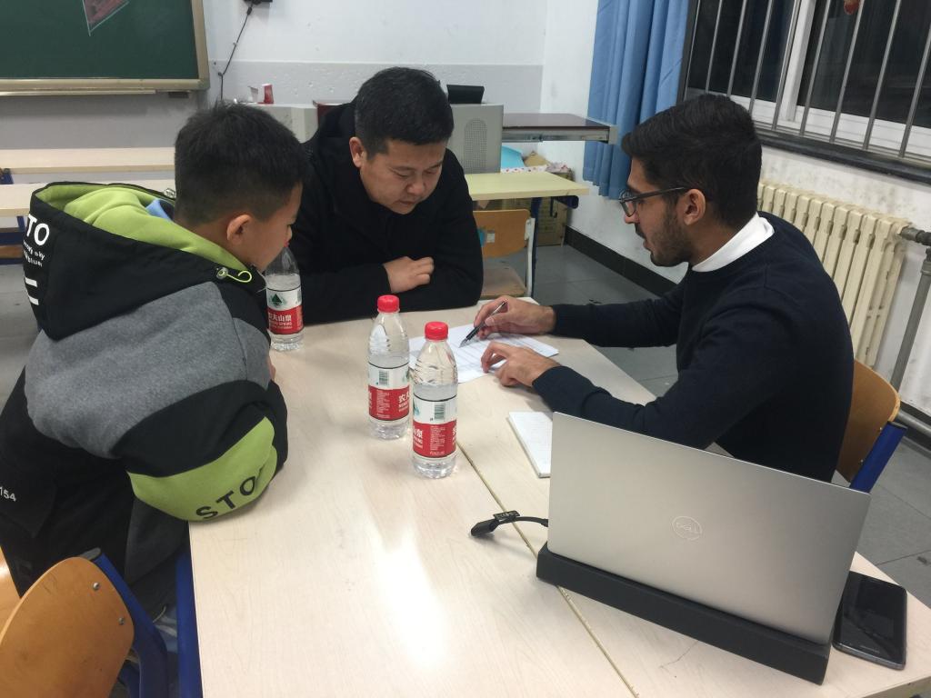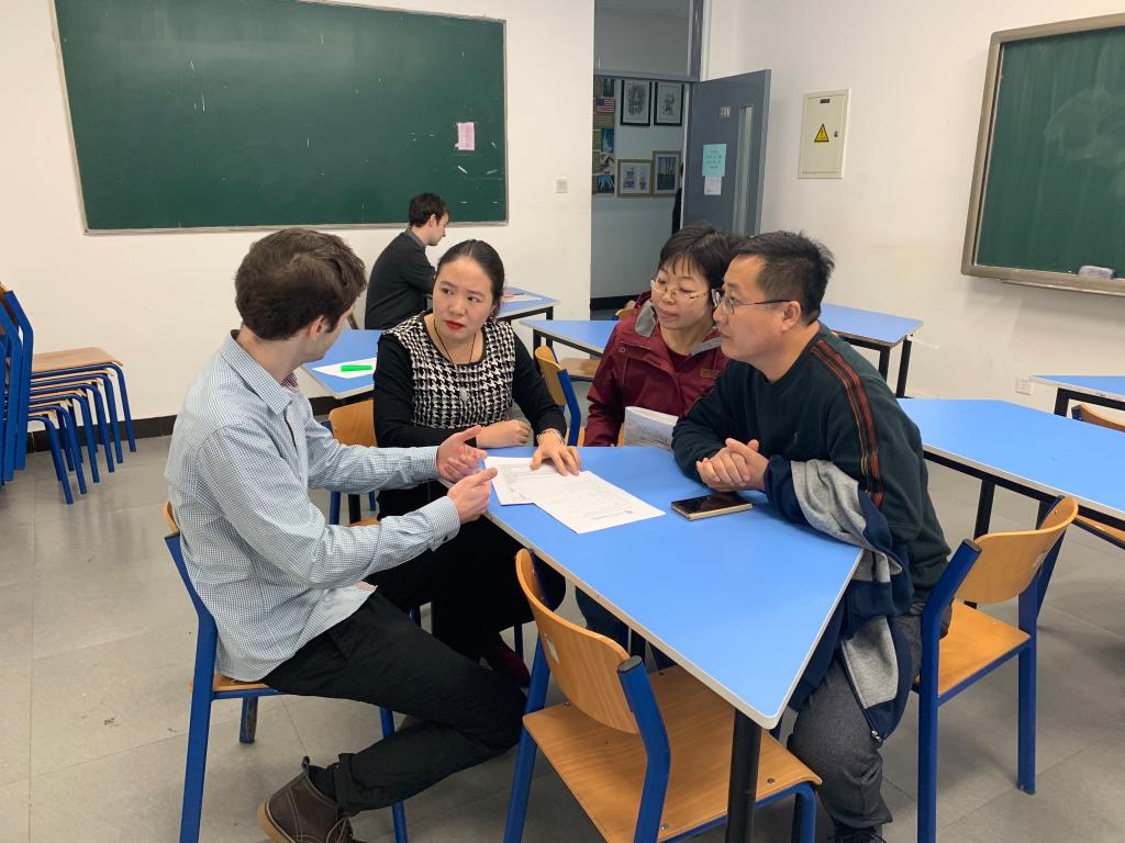 在交流过程中,外教结合过程性评价和《期中反馈报告》就学生的进步和有待提高点和家长、学生进行一对一沟通。各备课组长提前安排学生和教师进行翻译,也有很多家长直接与外教英文交流。另外,许多没有约谈的家长也积极主动地与外教沟通自己孩子学习情况。本次家长会受到了年级部、学校领导和家长们的一致好评。外籍教师积极参与家长会,将对孩子们的英语学习起到积极的促进作用。
