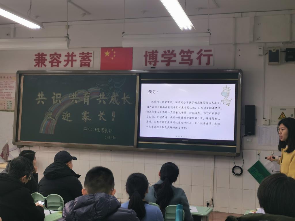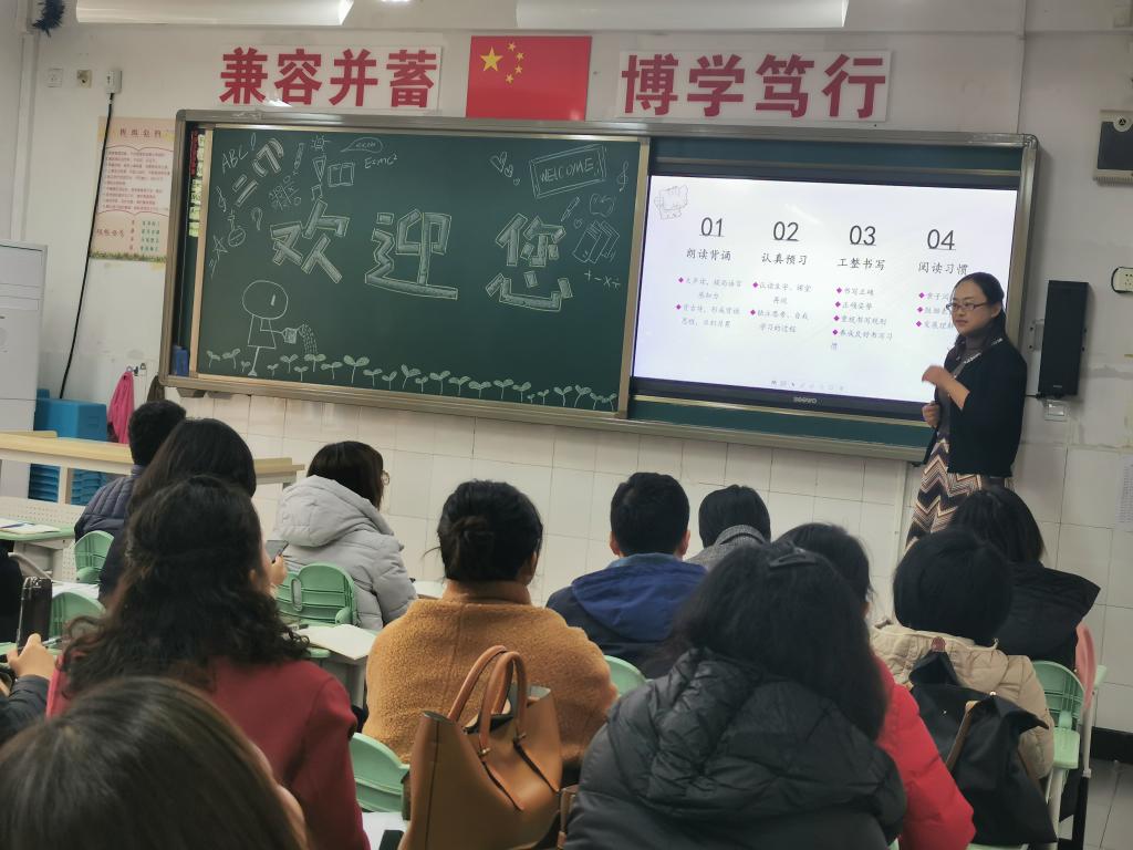 班主任们从班级整体情况、本学期班级重点工作、需要家长配合的事情、小学六年的规划等四个方面着手,向家长进行了详细的解读汇报。语数英科任教师则主要从“课程目标、具体学习内容、学科能力培养、家校共育”等四个方面,介绍了具体学科的学习要求。