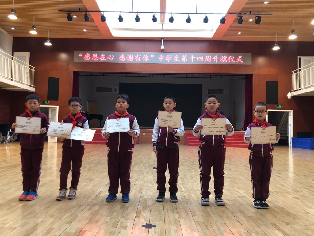 希望我们的少先队员都可以投身于公益事业,从力所能及的小事做起,让公益延续。席欣如还对冬季长跑活动做了全校动员,就安全长跑提出了具体要求。最后宣读了海淀区科技类学生获奖名单以及学校常规评比获奖班级情况。