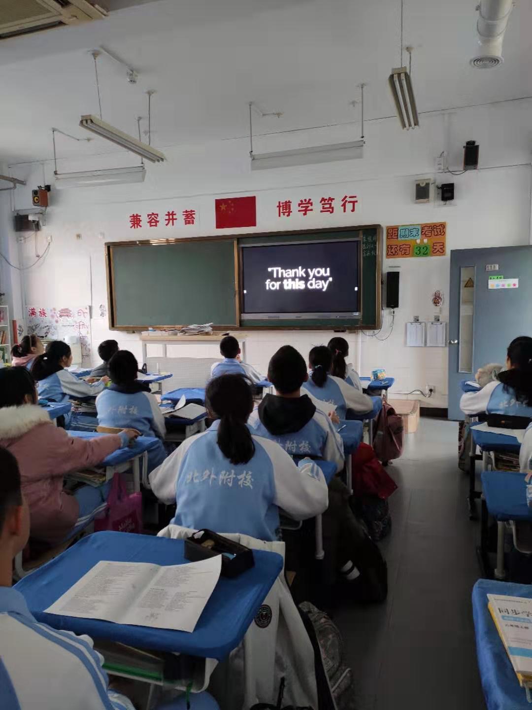 在晨读课上,同学们一起欣赏了关于感恩节的英语演讲,视频中反复提到我们要感恩所拥有的一切,感恩我们早已习以为常的生活中的点点滴滴,感恩父母、老师以及亲朋好友在成长之路上提供的各种支持和帮助。演讲者铿锵有力的演讲,配上极具感染力的背景音乐,再辅以视频中种种让人动容的画面,同学们很受触动。接下来,同学们跟着音频合唱了歌曲《感恩的心》英文版,朗读了英语备课组为大家收集整理的一系列感恩节主题的英文诗歌,再一次体会了感恩的意义。