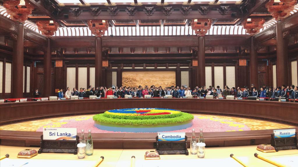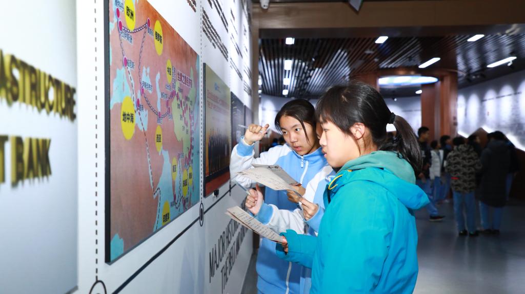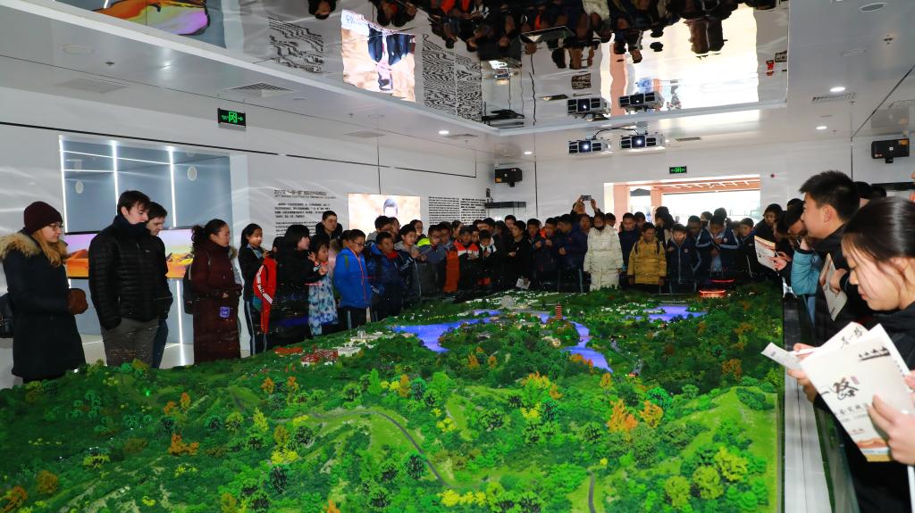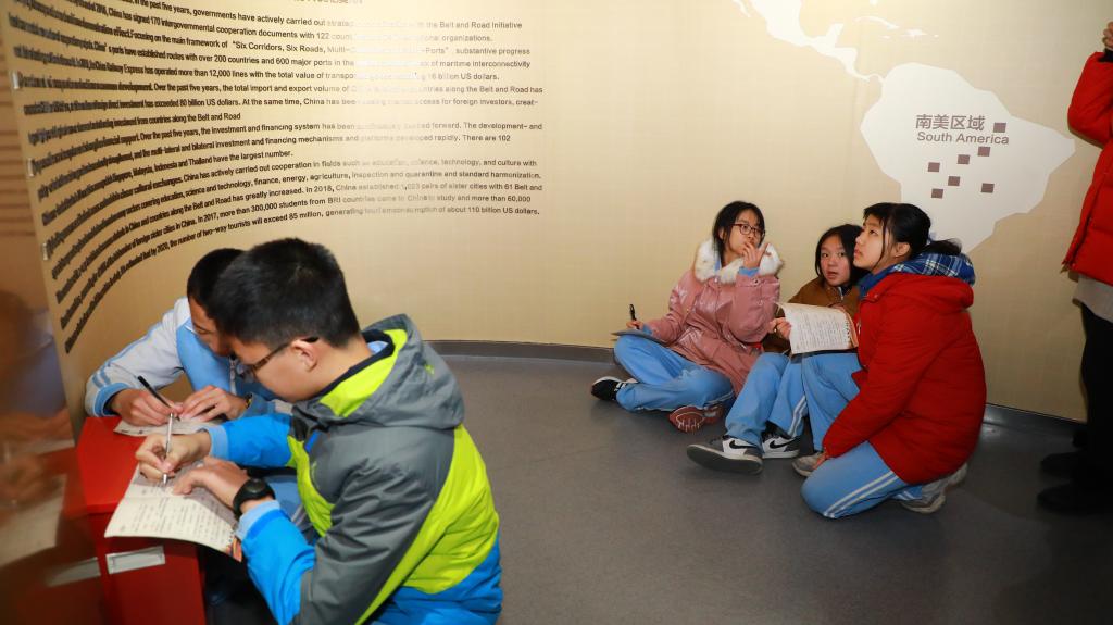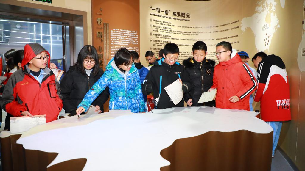 午后师生来到第二站:“一带一路”国际合作高峰论坛展示中心。它位于雁栖湖北岸。进入大厅,耳畔响起驼铃声声,仿佛翻开丝绸之路的历史画卷。时光飞跃,“丝绸之路经济带”和“21世纪海上丝绸之路”凝聚成“一带一路”,彰显人类社会共同理想和美好追求,探索国际合作以及全球治理新模式。“‘一带一路”中国倡议、高峰论坛、丰硕成果及重大事件,渐次铺展开来。展厅内,大量的“一带一路”实物结合多媒体展示,全流程还原了“一带一路”国际合作高峰论坛这一重大历史事件,让学生们切身感受“丝路中国,古今交融”的大国自信。