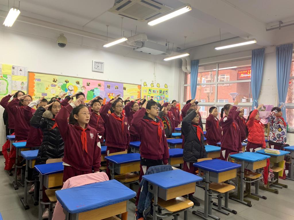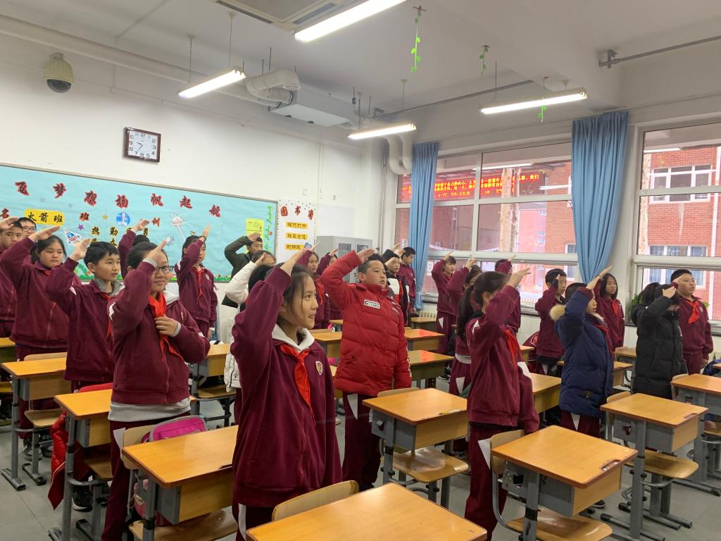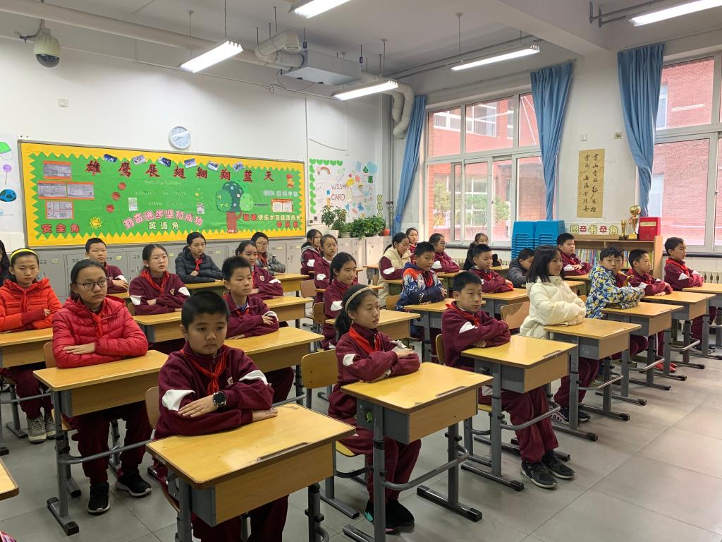 12月2日,我校小学举行本学期第15周升旗仪式。本周升旗仪式的主题为“创建平安校园——交通安全伴我行”,负责国旗下讲话的班级是四年级(6)班。