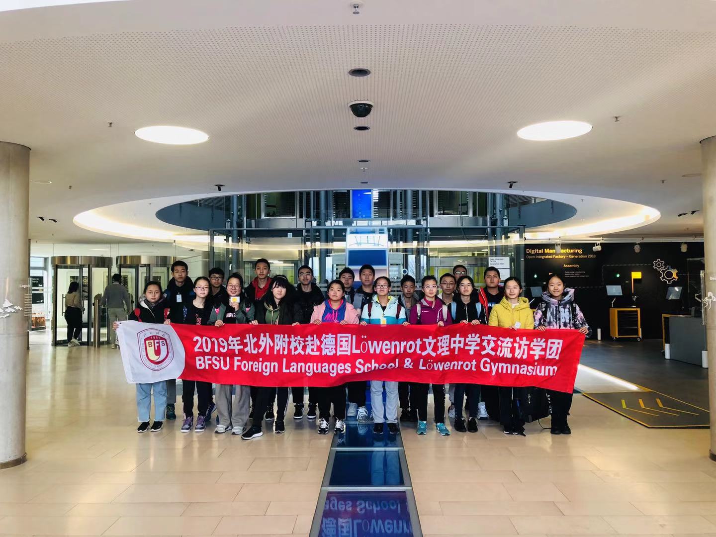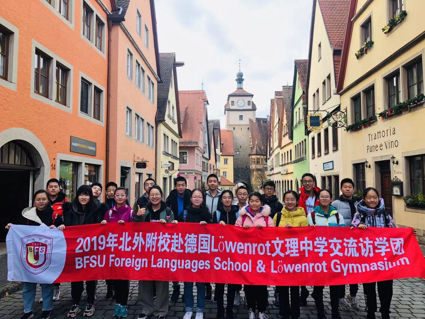 11月16日至30日,我校师生一行21人赴德国姊妹校Löwenrot Gymnasium圣莱昂罗特文理中学进行游学交流活动。时隔近两个月,北外附校21名师生与德国小伙伴们在德国重逢,欢迎的鲜花饱含着再次见面的喜悦,交流活动也正式拉开序幕。本次游学活动的主题为“ Technik”(科技),在为期十五天的交流活动中,我校师生与德国学生一同走进德国课堂,参加科技拓展活动,近距离接触德国家庭生活,亲身感受德国自然风光与人文历史,有效提高了语言水平,增进了中德学生之间的理解和友谊。