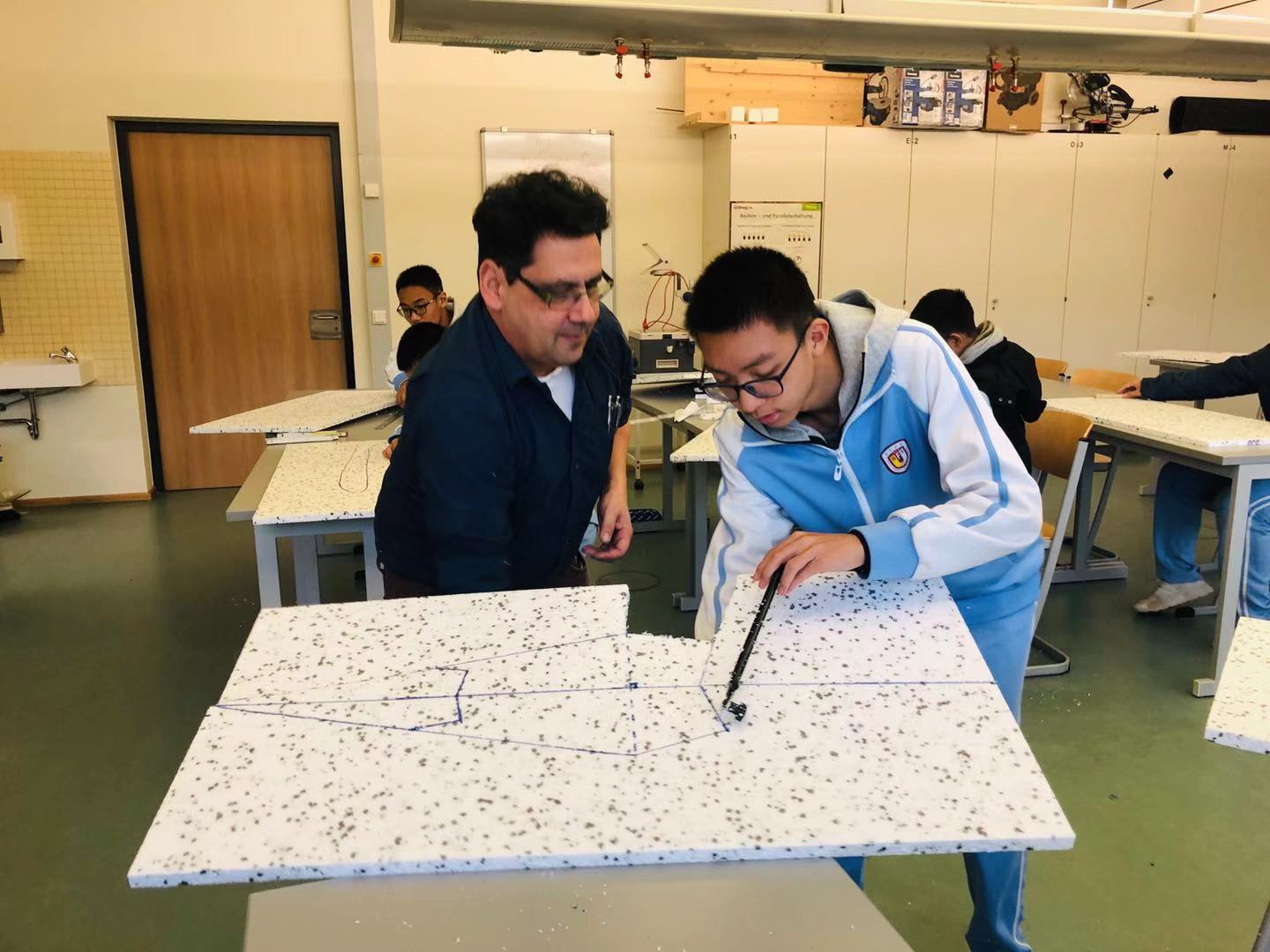 德国姊妹校的课堂让中国学生体验到了德式课堂的魅力。学校为我们准备了精彩的技术课(动手制作飞机模型)、音乐课(响指ROCK—Amadeus)、体育课(体验德国手球运动)以及艺术课(制作圣诞海报)。在课余时间,同学们还参观了校园的文化走廊、学生画展、植物园、以及运动馆等功能区。同学们还走进了学科教室,与德国的学生们交流互动。
