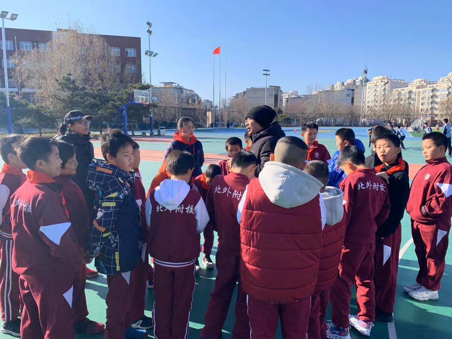 利用中午休息时间,优选出的队员在大操场进行了旱地越野滑雪的试滑练习,刚刚组建的旱地冰球队则在教练的指挥下打起了比赛。因为有冰球运动的基础,拿起旱地冰球杆的小队员们很快学会了旱地冰球的比赛方法和规则,比赛打得既有章法又有技术,既有配合也有突破,校外教练对小队员的临场表现表示满意并充满了期待。希望通过集训,首次代表北外附校参赛的旱地冰球队和越野滑轮队能取得优异的成绩。