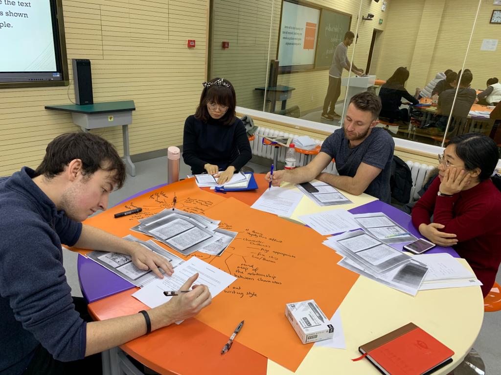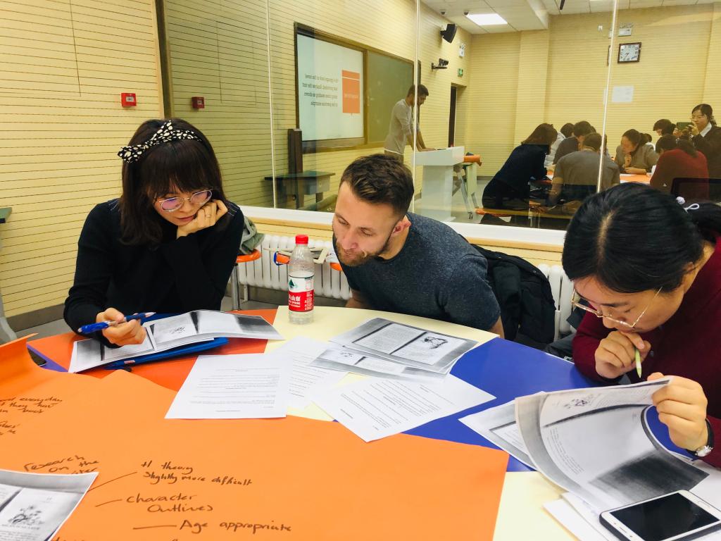 来自苏格兰的外籍教师Amar Sumal 为本次workshop的主讲人,研讨题目为“How to teach a novel class”。Amar讲到,初一年级目前在阅读的原版小说,符合初中生的年龄特点,集娱乐和学习为一体,可以促进学生自主阅读,提高阅读速度,扩大词汇量,能够帮助学生提升英语阅读能力。研讨从目前学生在小说阅读中存在的问题入手,如逐字阅读,缺乏语境意识,无法连贯而专注的阅读和思考,课后阅读存在偷懒现象等问题,提出四大需要各个击破的小说教学问题,如:课前教师要做哪些准备?如何有效指导学生展开关于小说的讨论?引导学生沉入语境的最佳方式是什么?如何确保学生能够保质保量完成阅读作业?中外教分小组就以上问题展开集体研讨。
