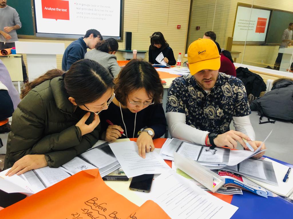 来自石家庄外国语的三位老师全程参与了本次研讨,他们反馈到特别欣赏我校的中外教联合教研模式,在整个教研过程环环相扣,层层深入,中外籍教师在教研活动中各抒己见、精诚合作、积极学习相关理论,所有老师都对英文原版小说教学策略有了更深刻的理解,对于如何深挖文本有了更为感性及理性的认识。