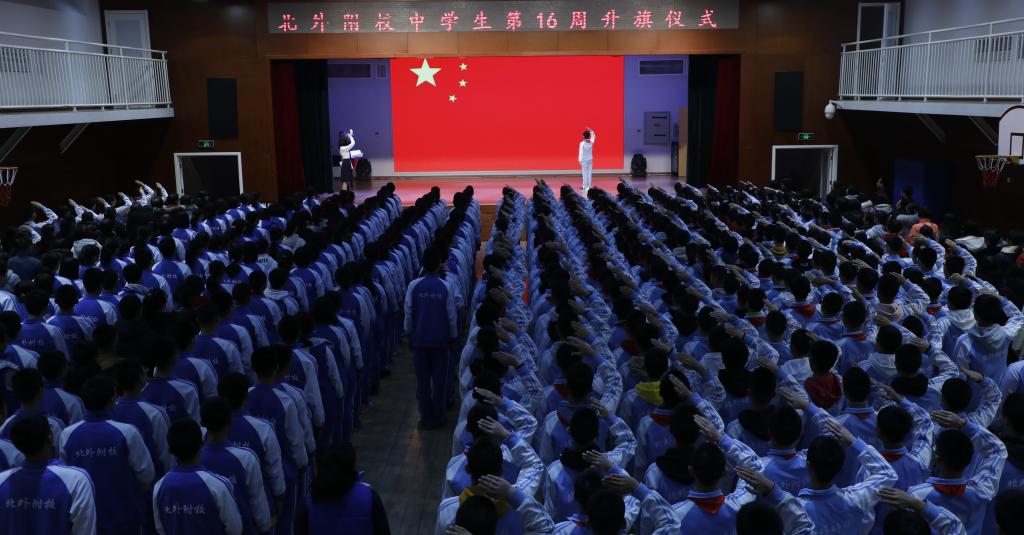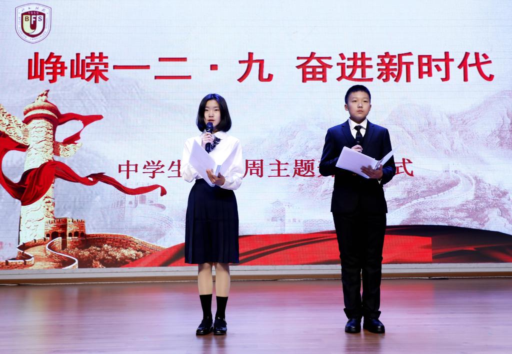庄严肃穆的升旗仪式后,同学们通过短片回顾了八十四年前北平数千名学生走出校门、游行示威,要求停止内战、一致抗日的难忘历史。初中德育副主任章继华老师进行了国旗下发言,她结合历史与现实,对同学们提出了“在新的时代肩负历史使命、不负时代重托,用热情燃烧青春,用睿智创造未来,为实现中华民族的伟大复兴而贡献自己力量”的期望。