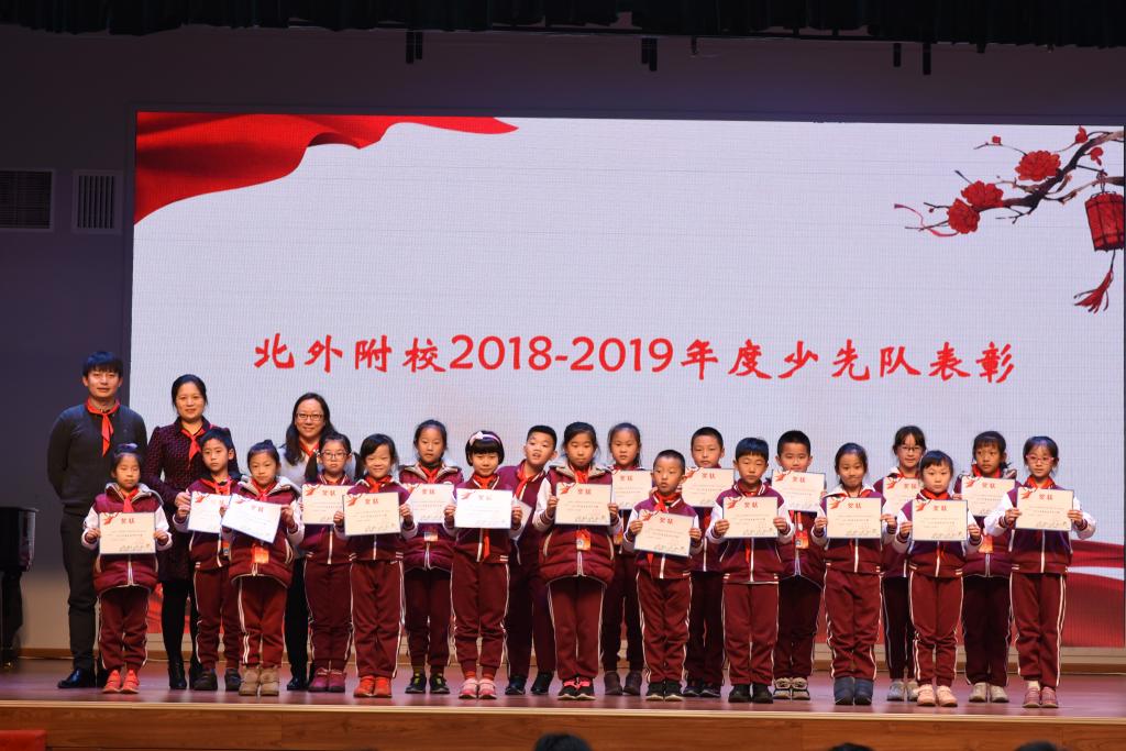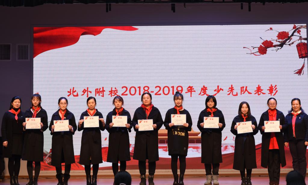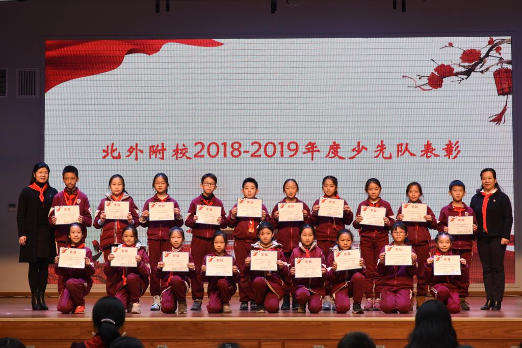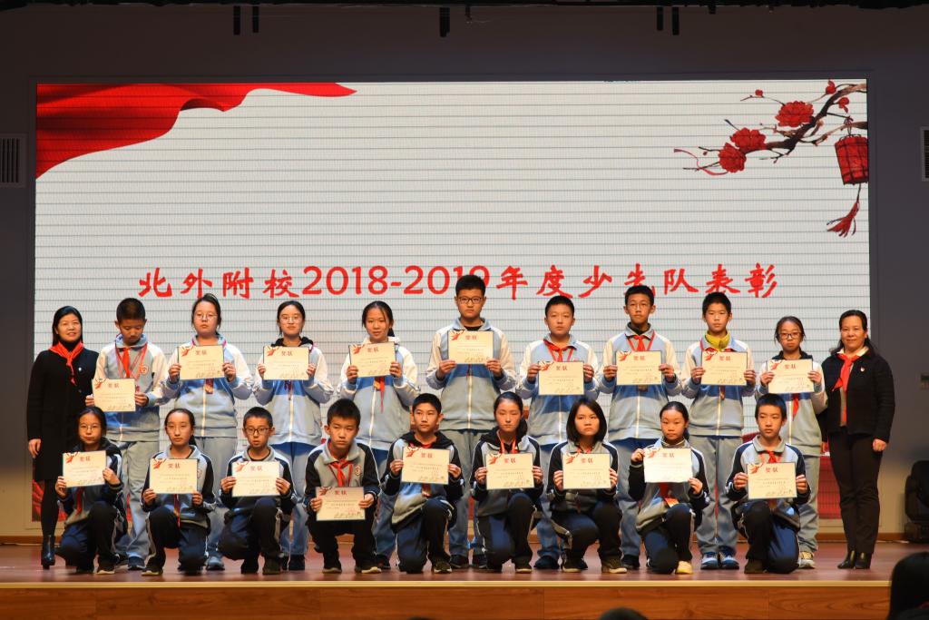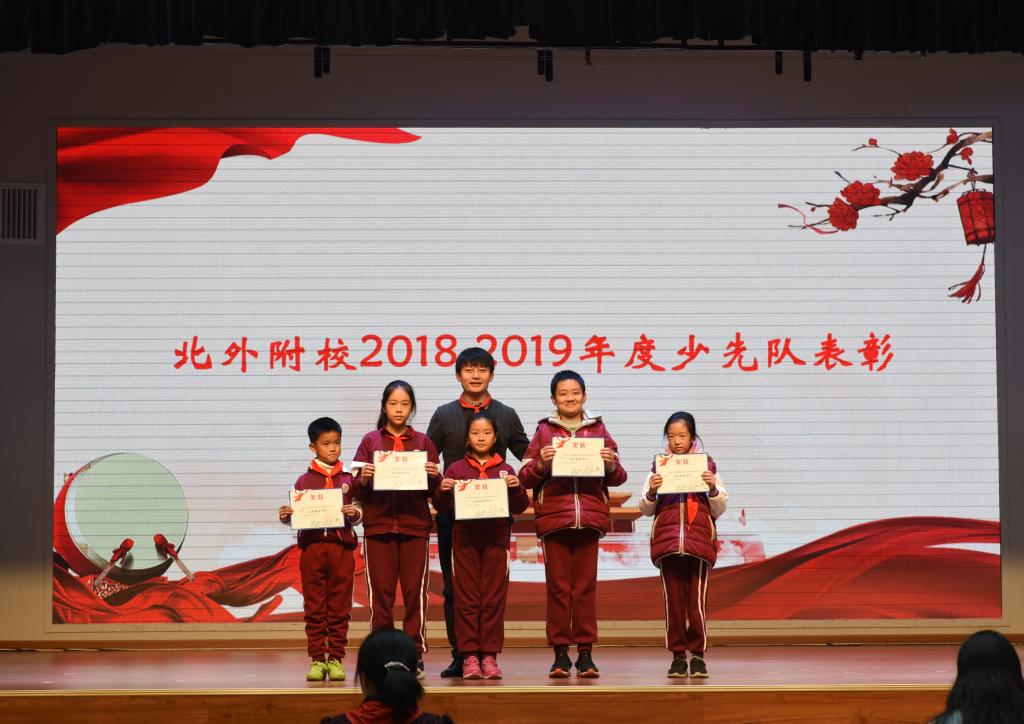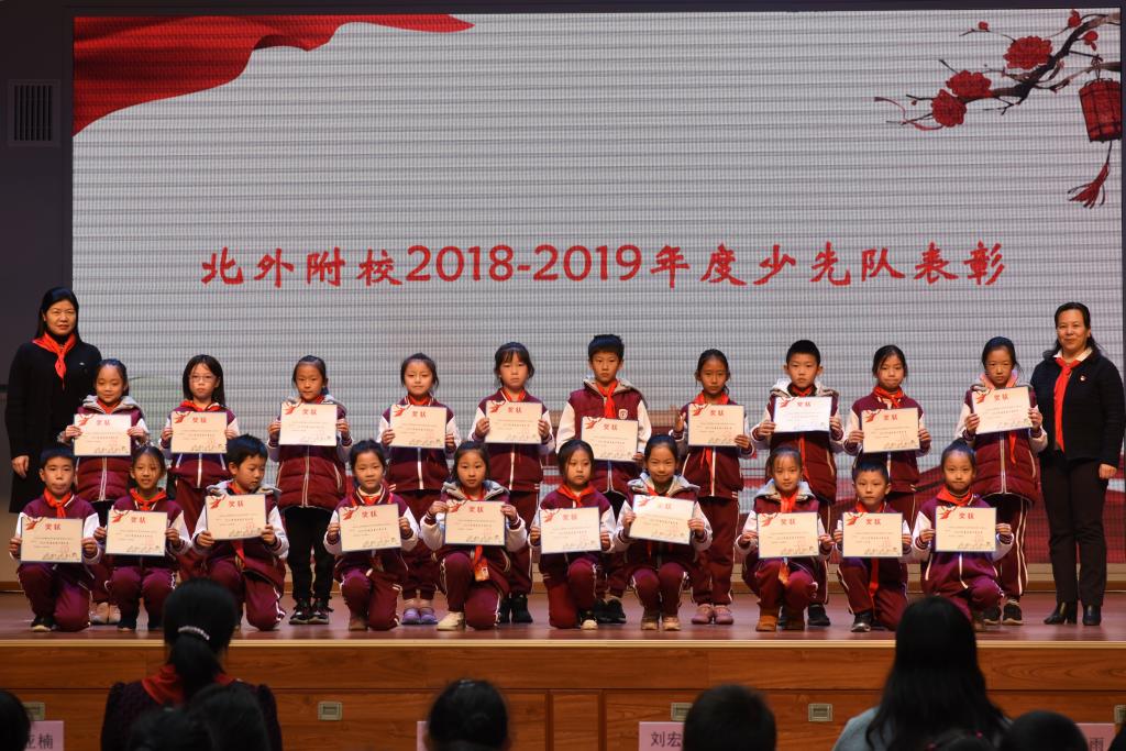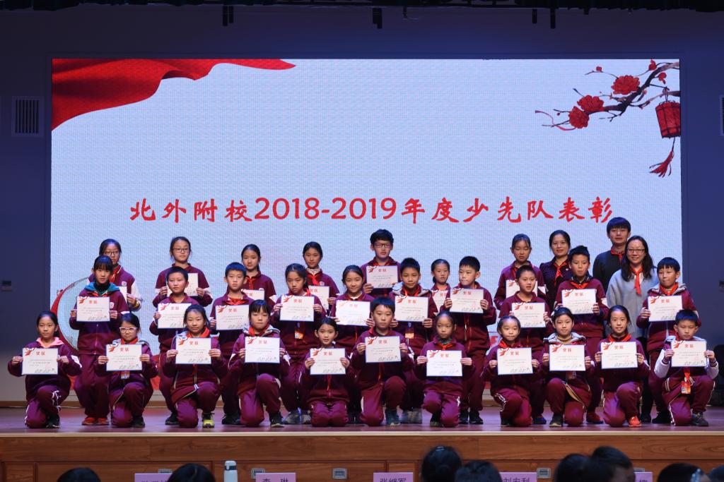 最后,会议表彰了2018-2019年度64名杰出少先队员、50名杰出中队干部代表、5个活跃动感中队、10名优秀中队辅导员,并为他们颁发奖状。