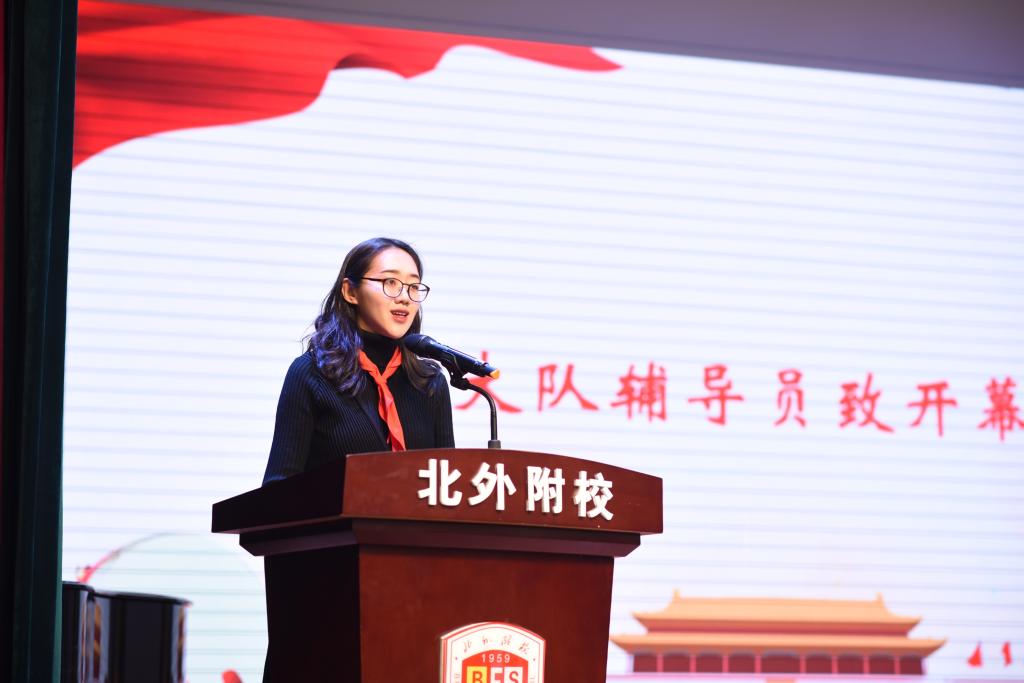 大队辅导员席欣如致开幕辞,强调少代会的会议精神和参会代表的责任与义务。
