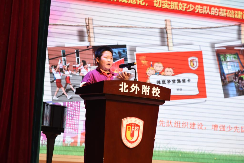 大队长代表我校2019届大队委员会作《2018-2019年度少先队工作汇报》,向大家展示了我校少先队组织一年来的工作情况。