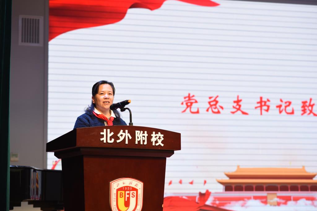 张继军代表学校党总支致贺辞,强调“红色基因”在我们党和国家的重要地位,希望队员们传承红色基因,做党团领导下的优秀后备力量。