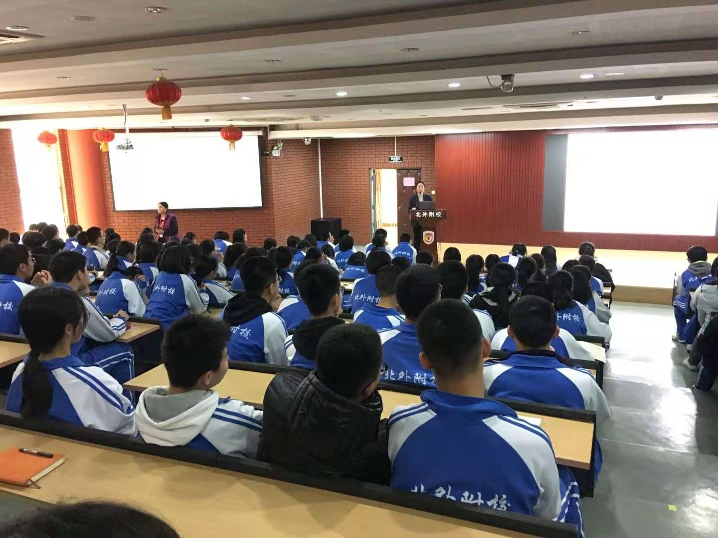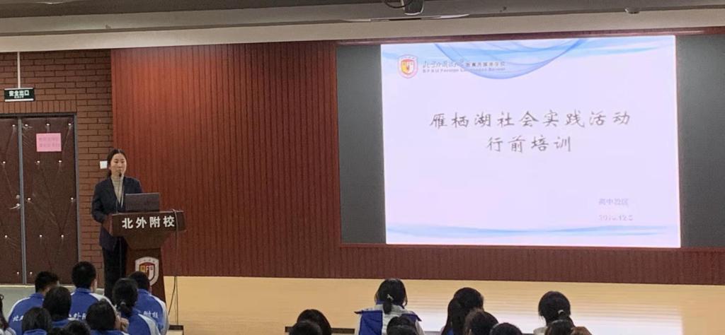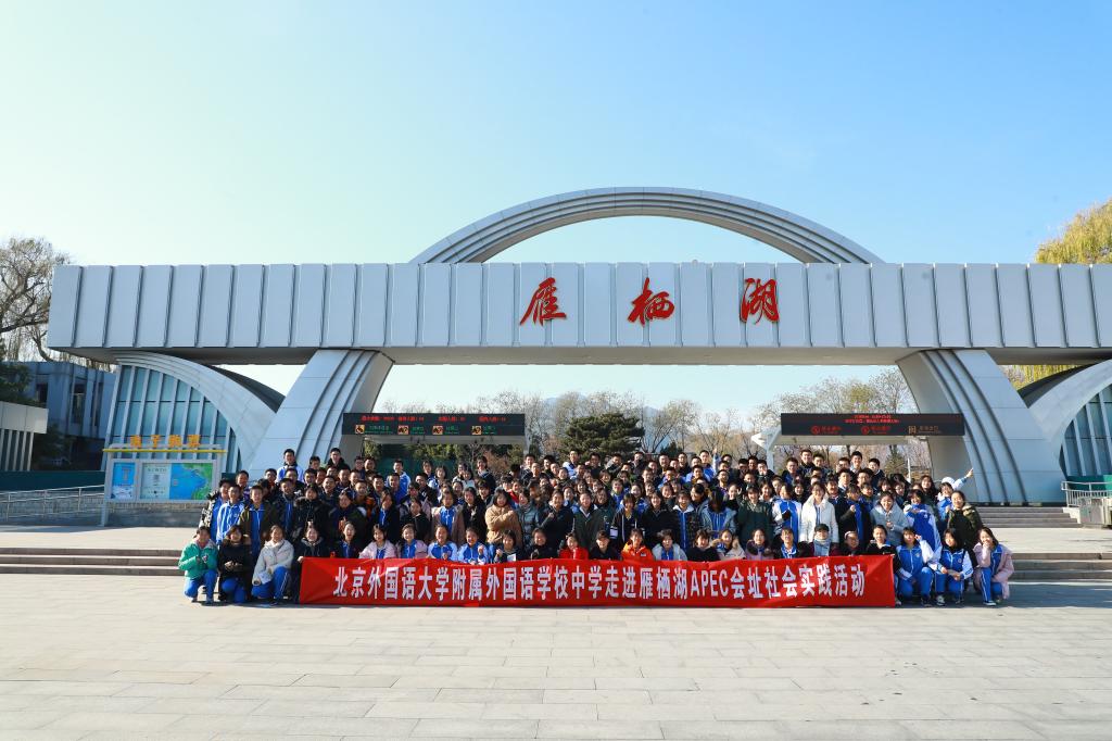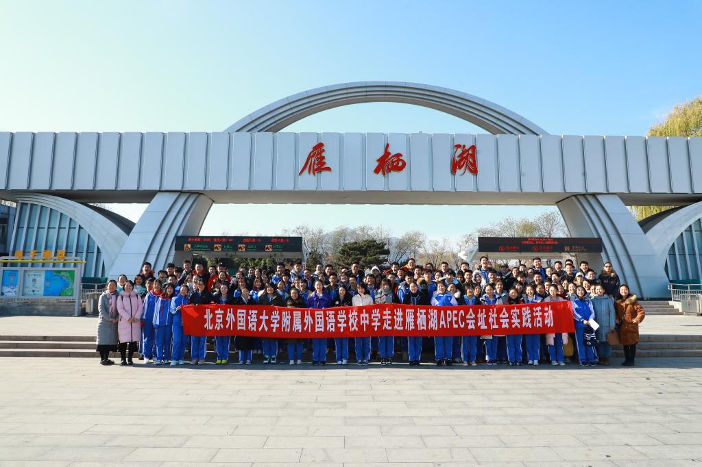 2019年12月6日,北外附校高一、高二年级在我校高中执行校长王静和老师们的带领下开展了以“‘一带一路’联通世界,APEC感知中国”为主题的雁栖湖社会实践活动。本次雁栖湖之旅包括参观“一带一路”国际合作高峰论坛展示中心、APEC峰会会址、一带一路展厅、核心岛主会场等。