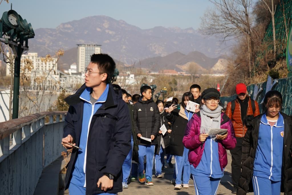 冬日的阳光照在燕山脚下,雁栖湖显得格外亮丽,在怡人的景色中,同学们谈天说地,充分享受着大自然带来的轻松与惬意。随后,同学们走进研学第一站——国际会议中心。国际会议中心,坐落在雁栖湖的东北角,本建筑以“鸿雁展示,汉唐飞扬”为蓝图,以中国古代皇家园林的“中轴线”及四合院的建筑为特点,体现“汉唐盛世”风格。其屋檐呈发散性,像大雁伸展翅膀,极具飞翔的动感,展现了中国的大国之风。