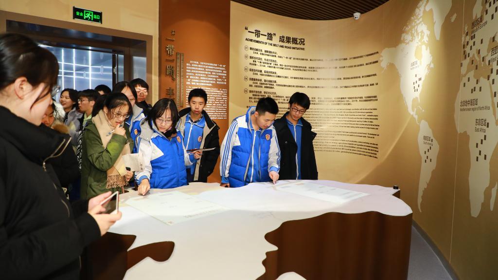 国际会议中心是开展“一带一路”峰会和APEC峰会会址的集贤厅。圆桌、汉式吊灯、柱浮雕、木雕屏风与淡黄色的地毯尽显低调通透的中国风。在解说员的精彩讲述下,同学们对“一带一路”有了更充分的了解。通过参观APEC峰会会址,同学们纷纷表示,深刻地感受到“祖国更加强大,我为之自豪。”