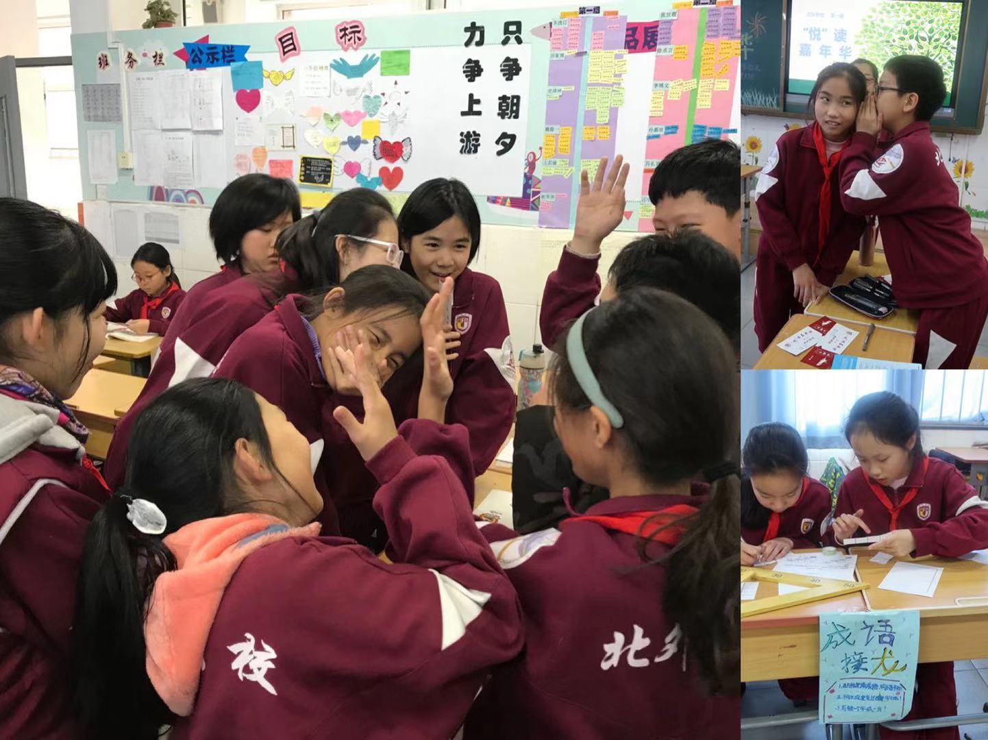 此次“悦”读嘉年华的活动前期,各班为此次活动制作宣传海报、布置教室、题目审核等工作。小志愿者们充满热情,积极的为此次活动忙碌着。活动伊始,孩子们分散到各个体验区开始体验书籍中的乐趣。有的同学声情并茂的朗读着自己喜欢的片段;有的同学走进书中人物,展开联想开始人物表演了;还有的同学抽签抽到自己拿手的考题,兴奋的喊出答案。体验过四本书带来的乐趣后,孩子们又纷纷来到了“悦读”游戏体验区,他们通过比划猜故事名、飞花令、故事接龙等游戏又一次体会到阅读原来可以有多种方式。此次活动让孩子们充分体现了“悦”的其乐无穷。