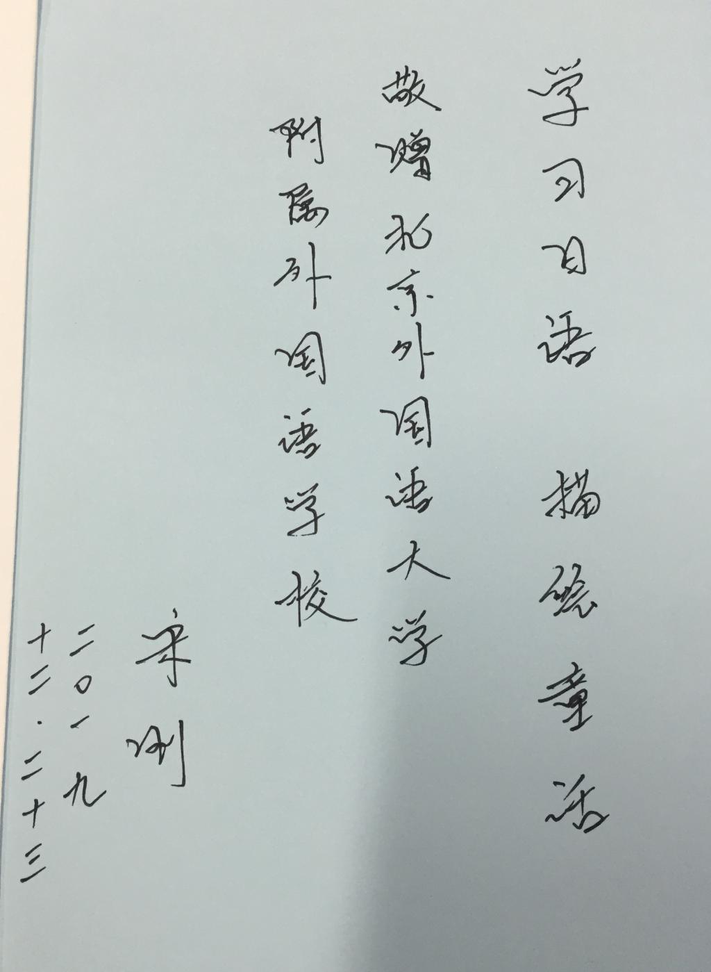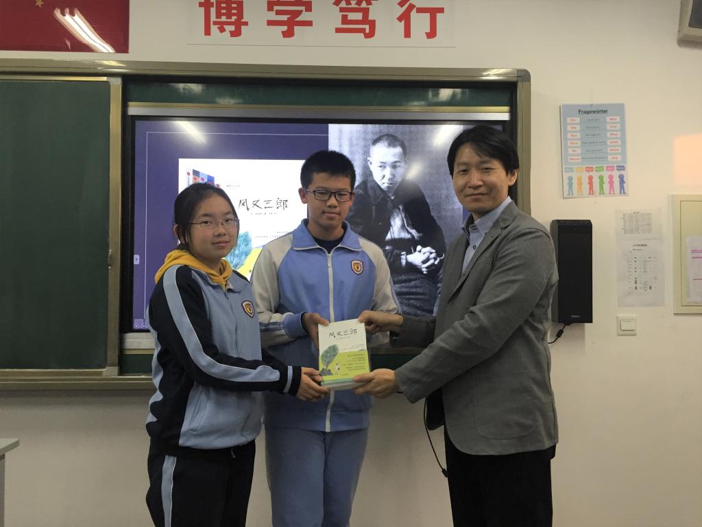 最后,宋老师为我校赠送了自己的译著《宫泽贤治童话集》,并题字祝福同学们可以用日语的画笔,描绘出如童话般灿烂的美好人生!