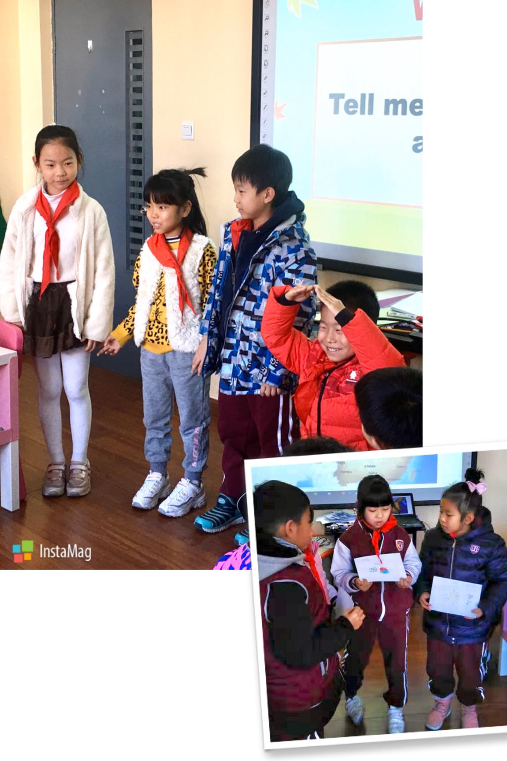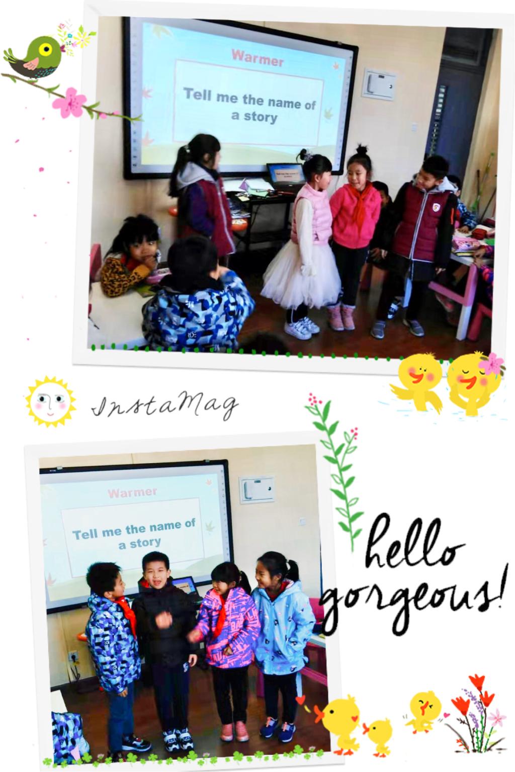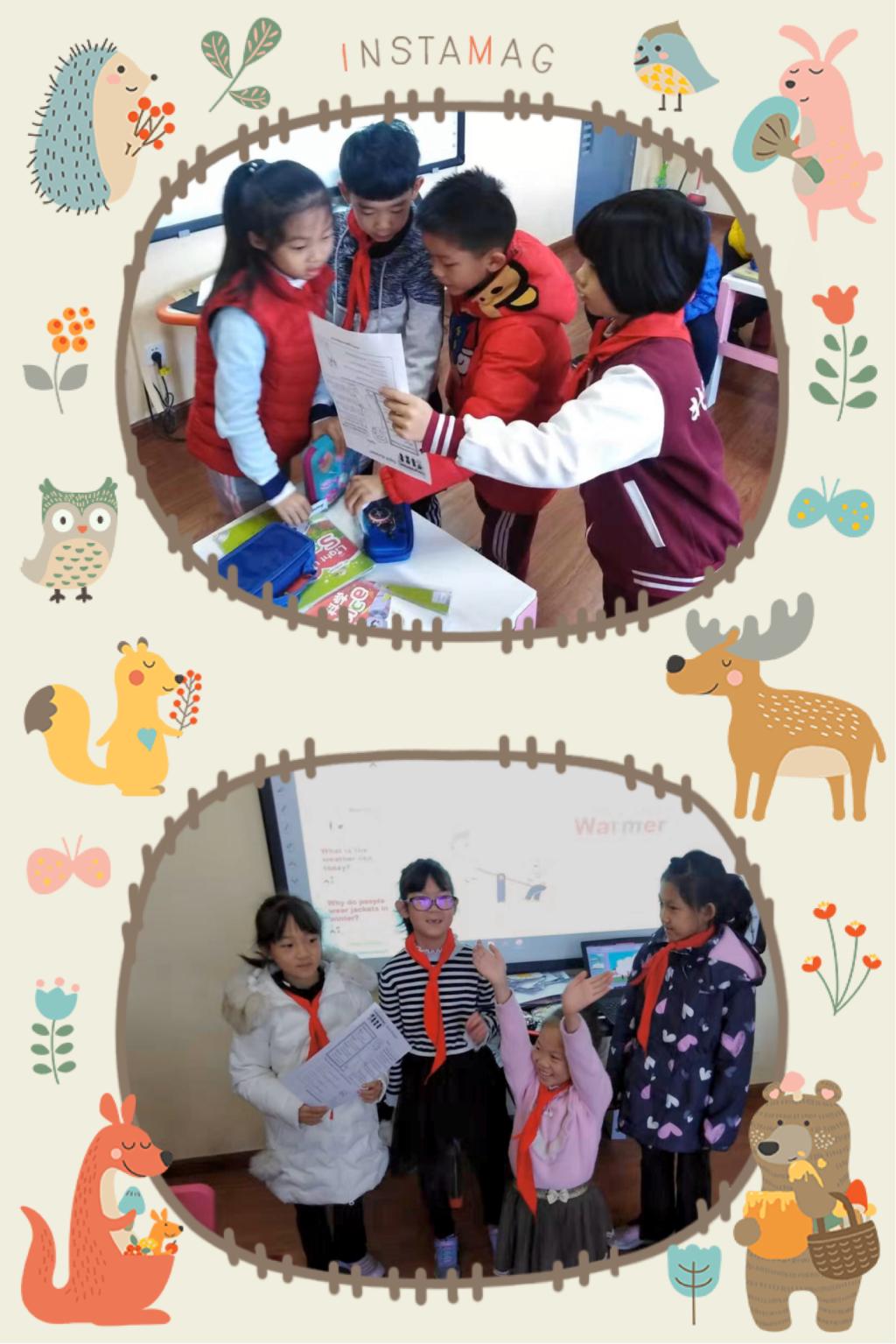 故事创作完成后,我们要求孩子们写下各个角色的台词,之后就要开始表演啦。孩子们通过讲述故事以及背诵对白的方式来练习英语口语。他们对戏剧表演非常有热情,争先恐后地想要走上“舞台”。每个小组编写的故事非常生动有趣,展现了非凡的想象力与创造力,令人惊叹。同时,每个孩子的表演都活力四射,极具感染力。