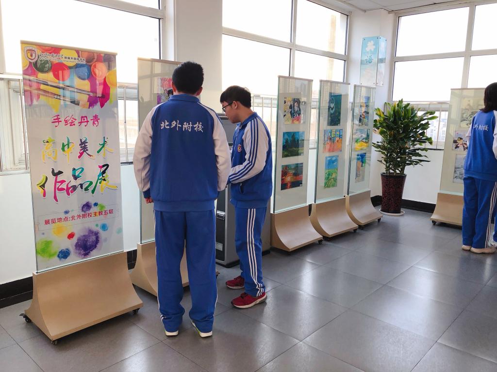 展览作品形式多样,涵盖素描、水粉画、彩铅画,国画等,集中体现了北外附校“兼容并蓄、博学笃行”的广阔胸怀。画展结合了高中校本和社团美术课程成果展示,充分利用圣诞、新年两个不同文化背景的传统节日,使中西方文化自然融合,相互渗透,把传统与创新、东西方绘画之美进行融合与沉淀。