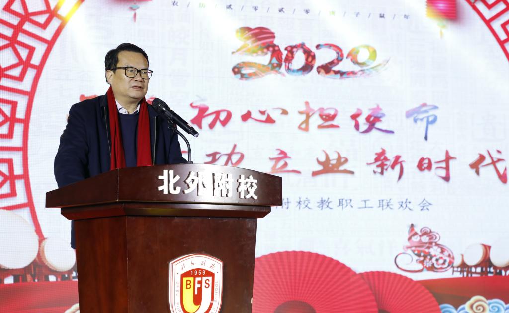 校长林卫民代表校领导,向辛苦工作一年的全体教职员工发表新年致辞,他总结了过去一年我校各校区、各部门在工作中共同取得的成就。他表示,2020年,我校已进入高质量发展时期,我校全体教职员工将以更高的视野、更深入的反思、更有价值的引领,能够高质量地培养一批又一批敢于担当的、独立自主的人。只争朝夕,不负韶华,共同祝福2020。
