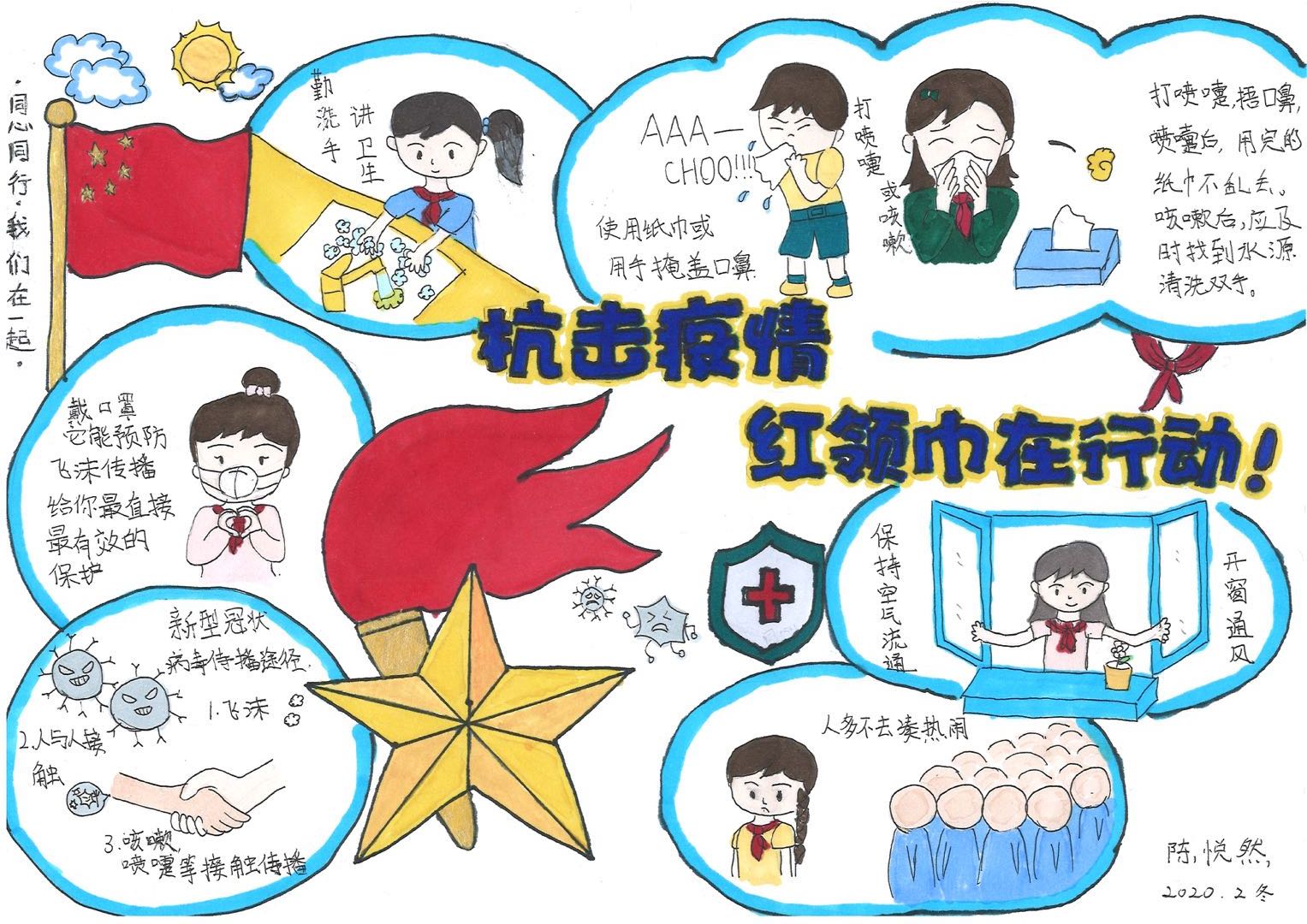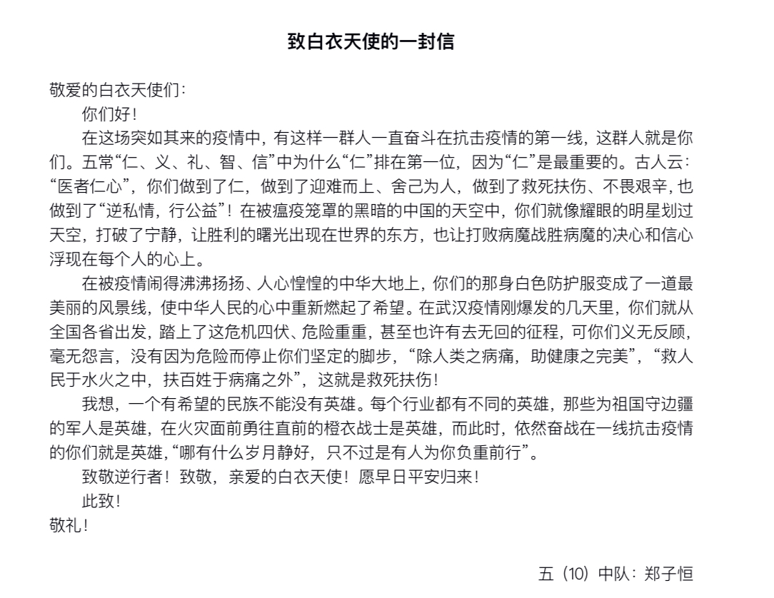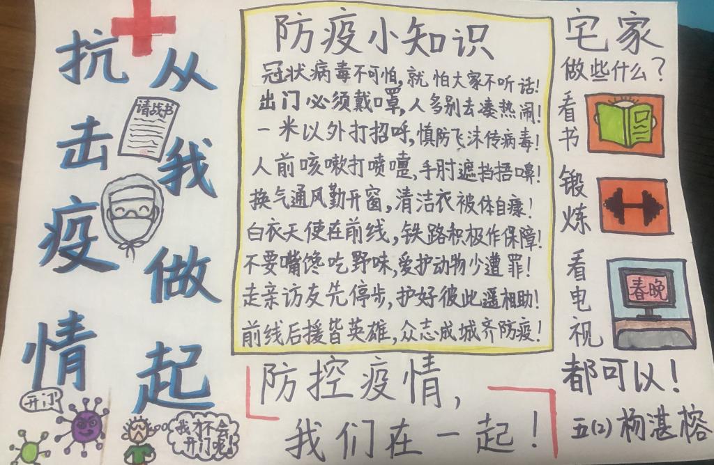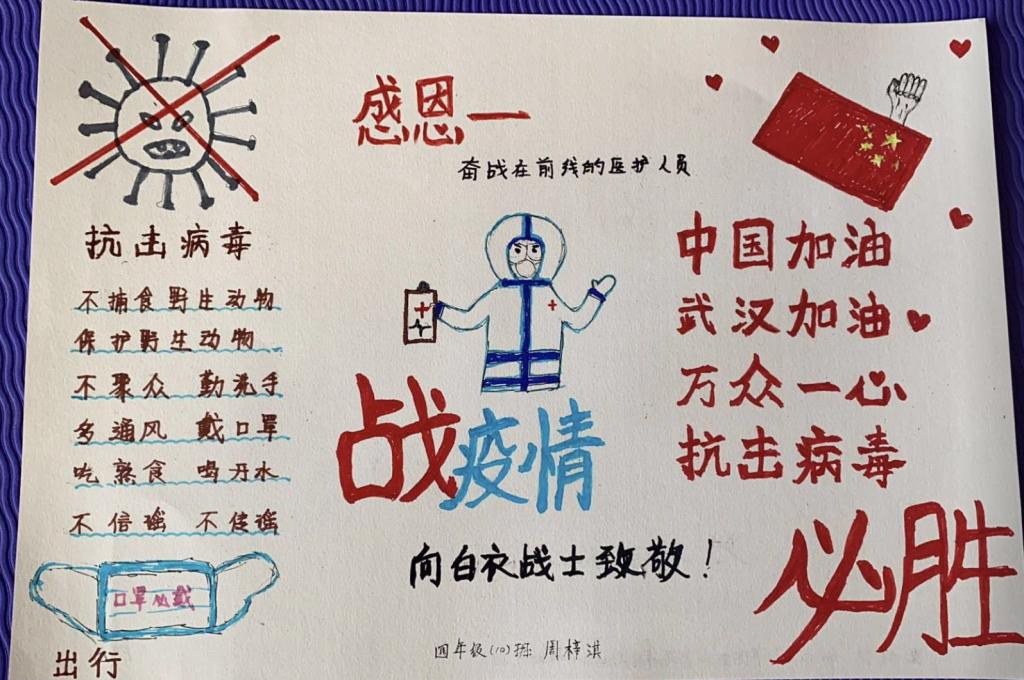 这个假期,少先队员们也在学校少先队大队部的号召下,纷纷以笔做枪,加入到这场没有硝烟的战役中,为抗击疫情贡献出一份精神力量。