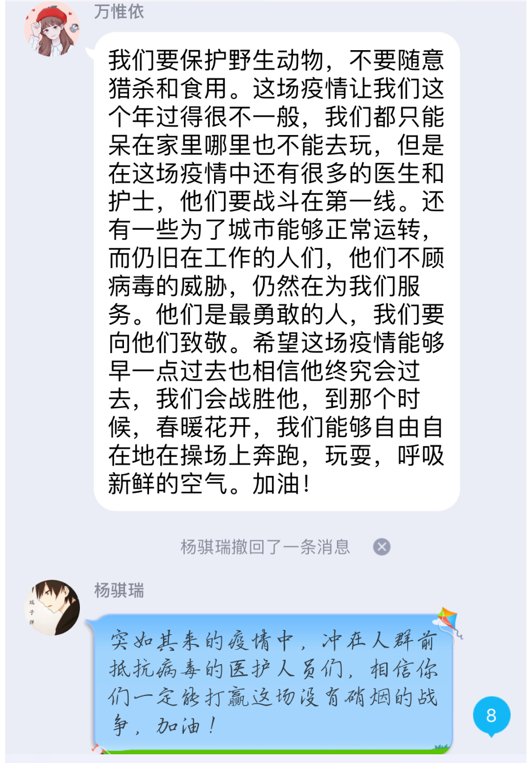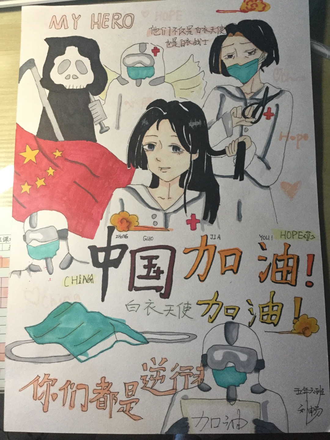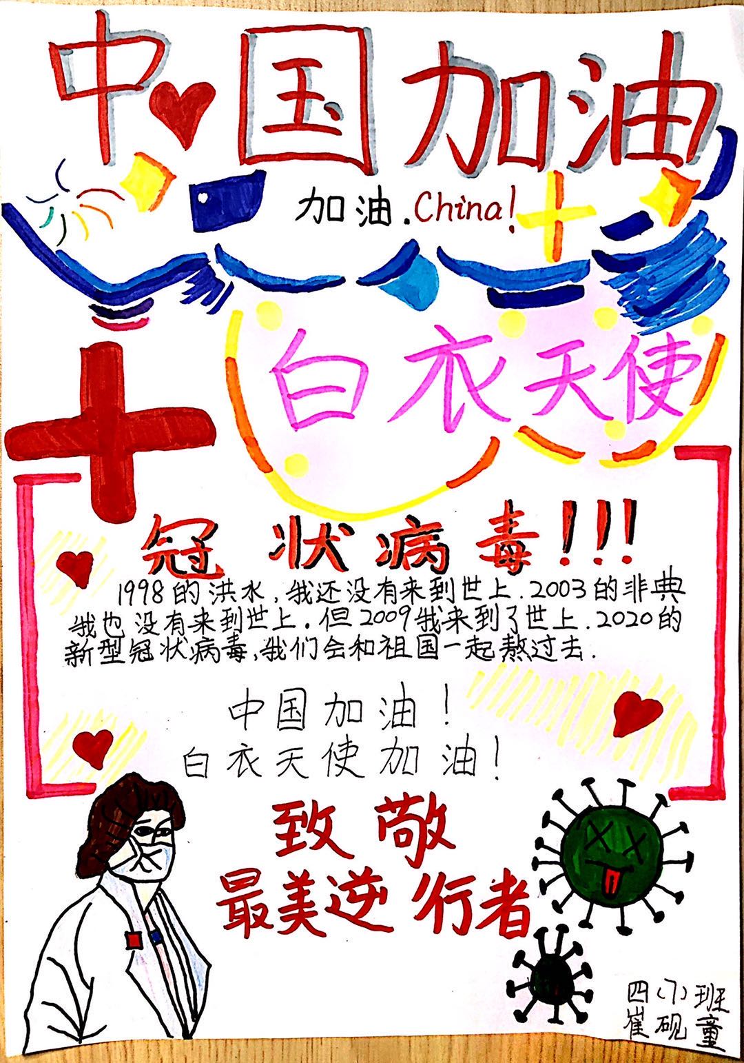 这个假期,少先队员们也在学校少先队大队部的号召下,纷纷以笔做枪,加入到这场没有硝烟的战役中,为抗击疫情贡献出一份精神力量。
