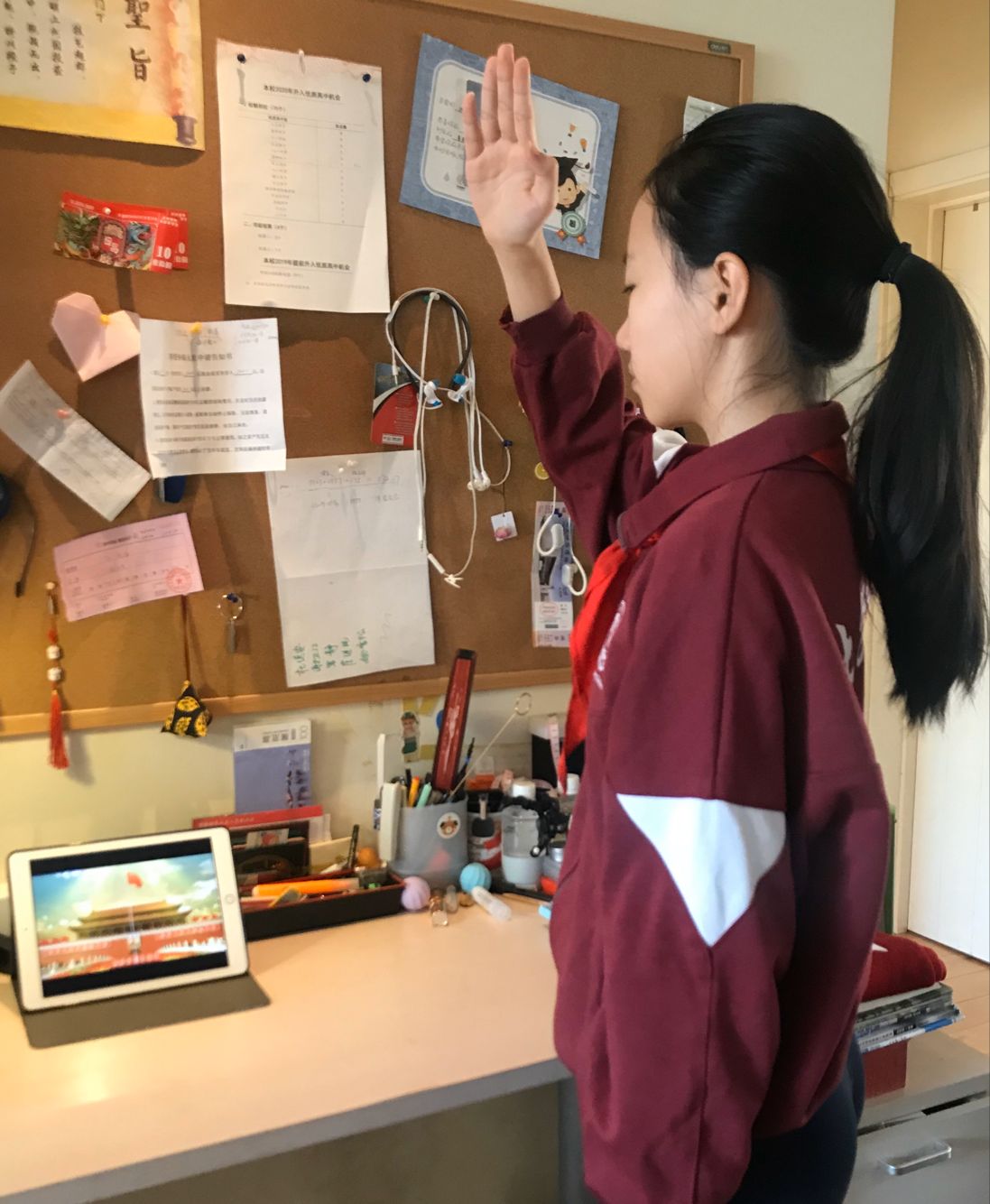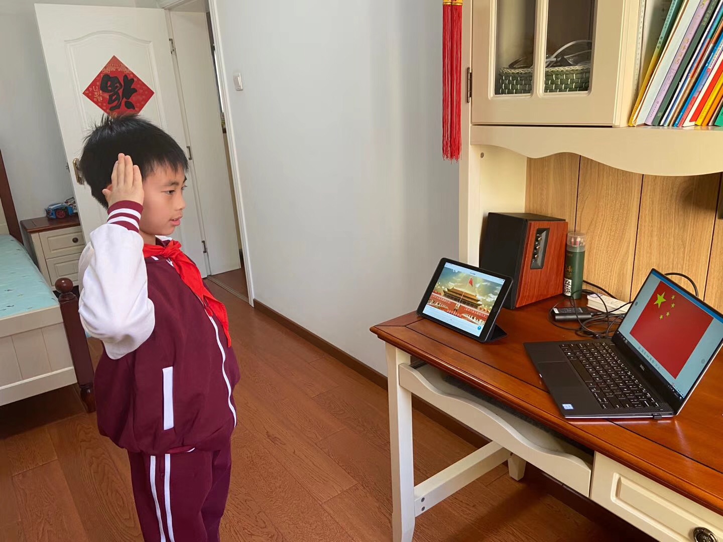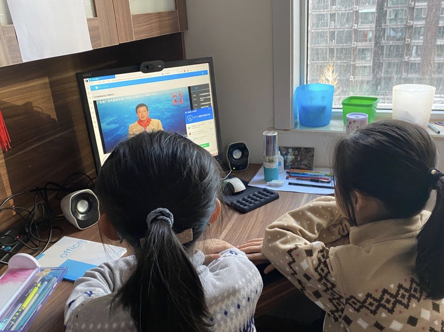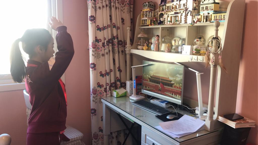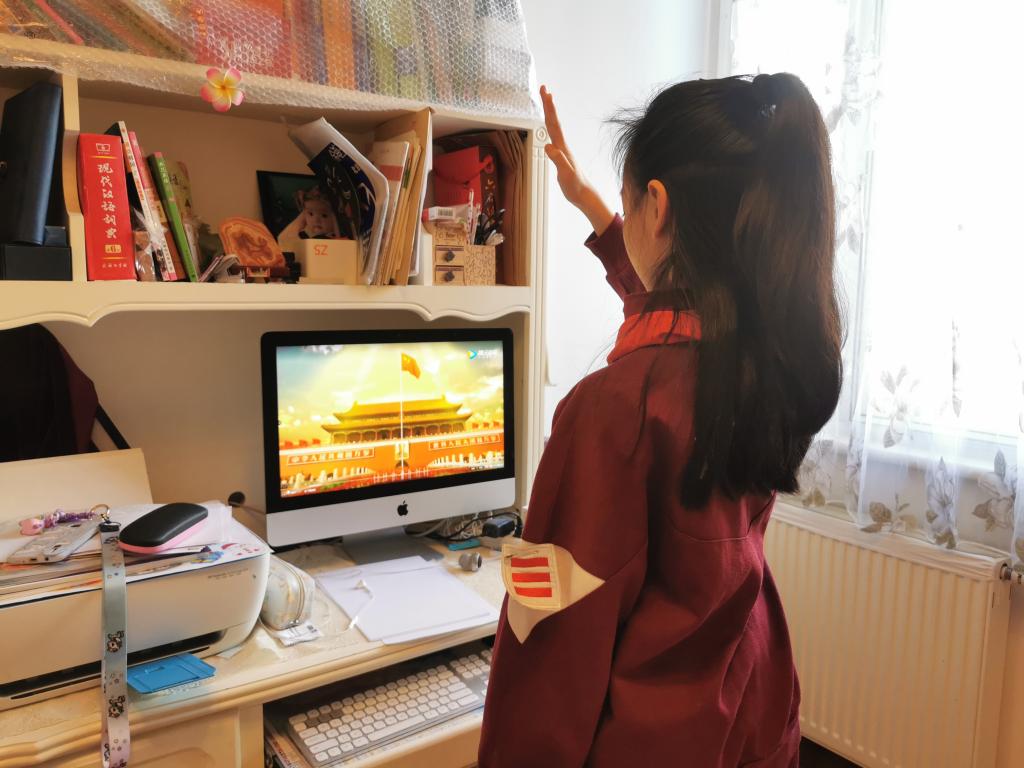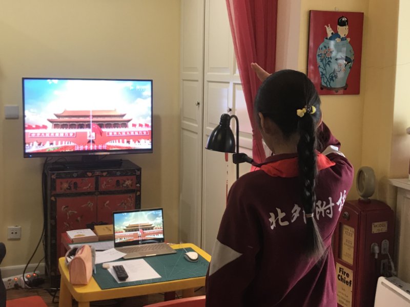 2月17日上午8点半,北外附校的少先队员们佩戴着整齐的红领巾端坐在直播端前,与全国各地的少先队员一起,共同参加线上升旗仪式。