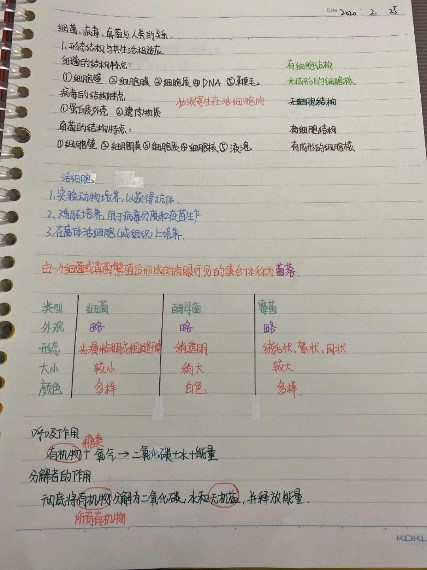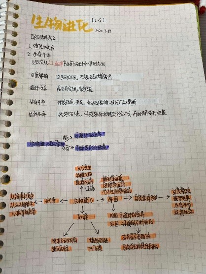 生物笔记图文并茂,知识构架得以初步显示。