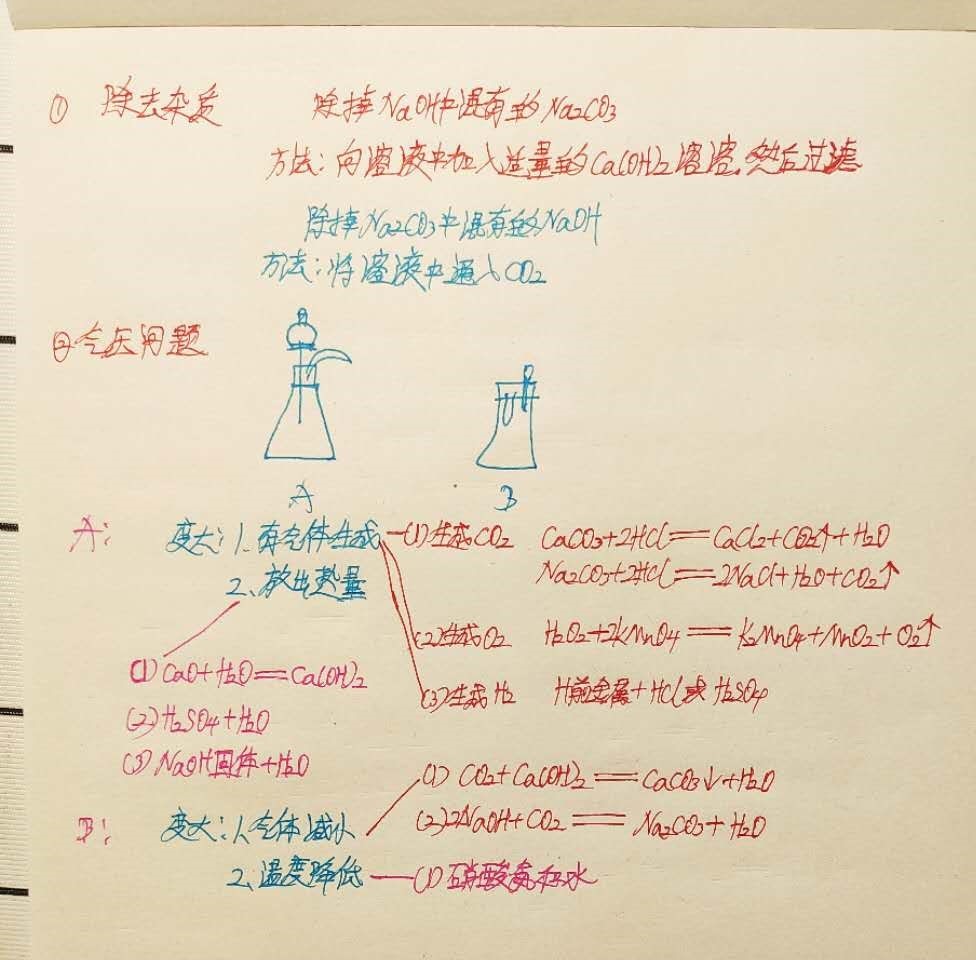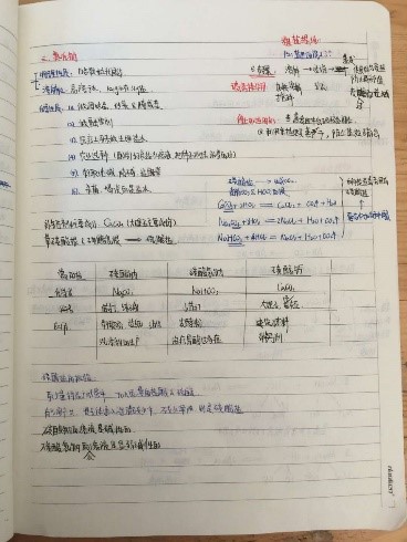化学笔记记录详细,突出学科特点,书写形式多样,绘声绘色。实验过程、分析思路在笔记中有所体现。