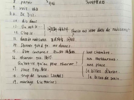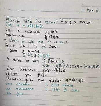 法语笔记的词条例子全面,字迹工整,条理清楚。