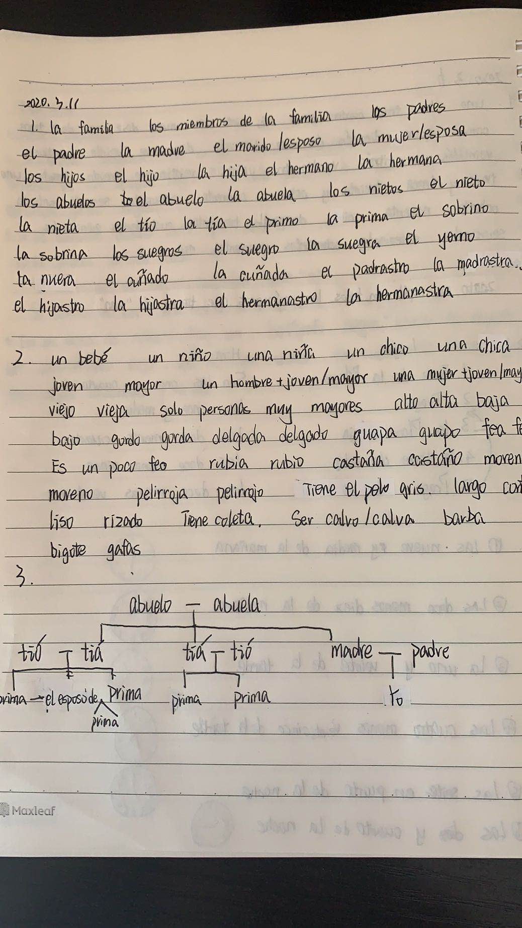 西班牙语的同学们用不同颜色笔迹标注了重难点,内容清晰明了,字迹工整,手绘思维导图让记忆单词不再枯燥。