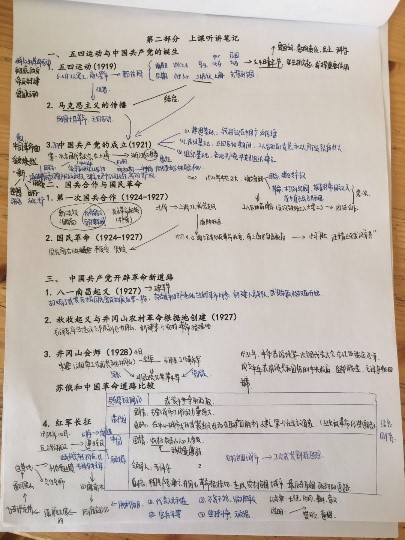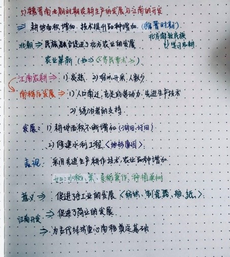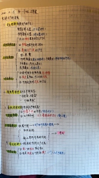 学生们利用圈点勾画的方法对课程内容进行了及时的梳理,重难点突出,学生们对知识联系的关注对提升历史学科素养帮助很大。