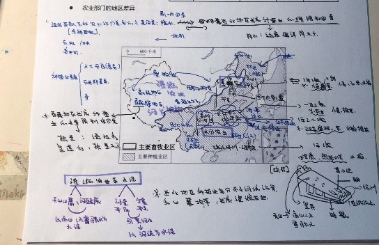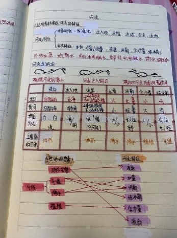 在笔记中,学生们通过知识结构、表格和地图等突出要素之间的联系,体现出地理学科的学科特点。