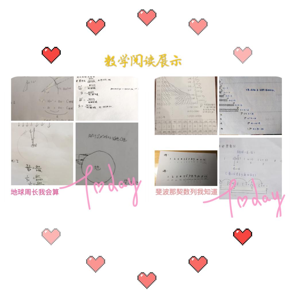 六年级开展与课本知识对接的数学阅读课,如埃拉托塞尼测量地球长度、斐波那契数列等,同学们经过动脑思考,动手研究查阅资料,动笔描述,拓宽了数学知识面,提升了数学思维。数学实践课同学们化身小小研究员,兴趣昂然的设计思路,调整数据,再次自我提问思考,总结经验,沉浸在探究的乐趣中,经历了完整的探究思考过程,提升了数学能力。