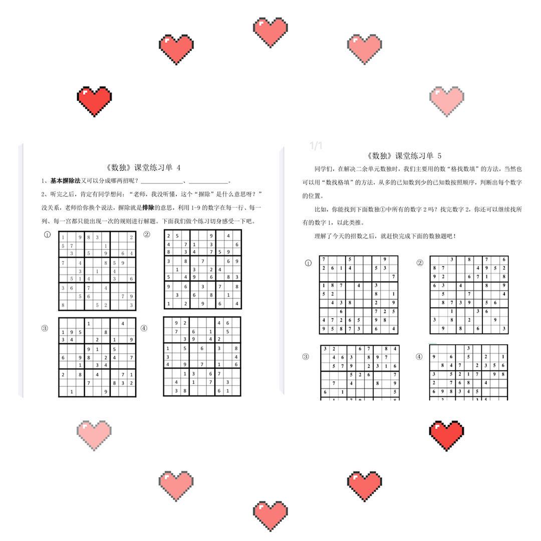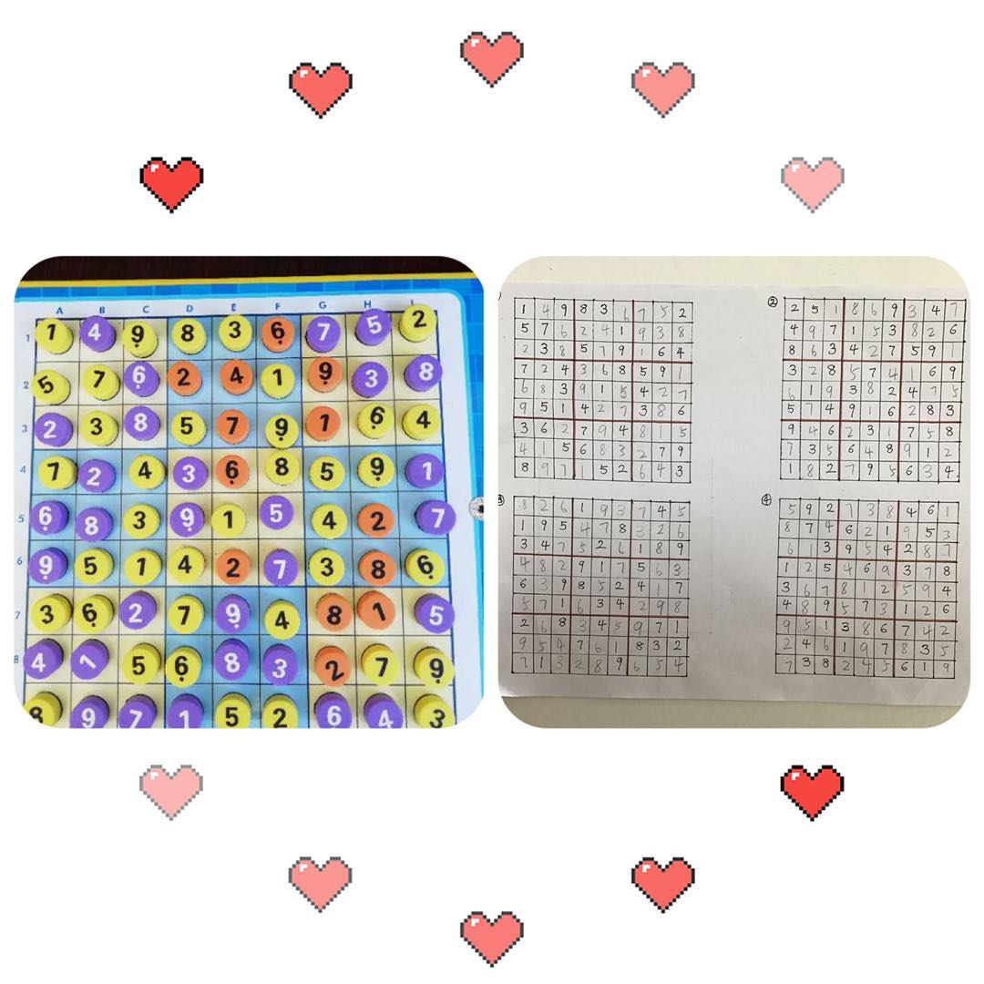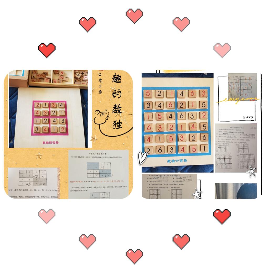 数学素养要提升,思维能力当先行。二年级开设了数独游戏系列课程,数独是一款推理的游戏,孩子们对数独的兴趣很大,通过猜想-尝试-验证-调整验证的过程,逐渐掌握了数独的学习的方法,从简单的四宫格,六宫格再到九宫格,孩子们的观察能力和推理能力也在逐步的提高。通过数独的学习,不仅培养了孩子的数学思维,也很好的养成了自主学习的专注度。
