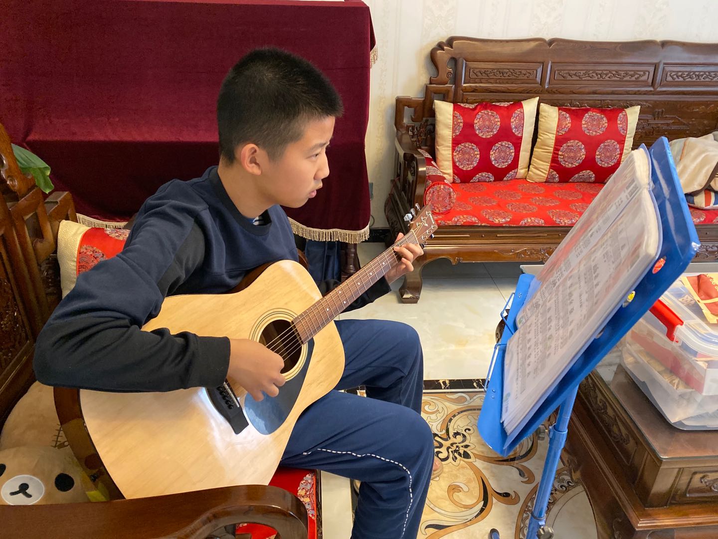 在网上学习期间,我坚持每天做体育锻炼,认真完成体育老师布置的任务,并在小程序拍照片或视频打卡。身为体委,我还会监督班上的其他同学完成打卡。每天我准时参加线上各门课程的学习,认真听讲,及时整理笔记,按时完成作业。课余时间我会发展自己的兴趣爱好,弹钢琴、弹吉他等等。