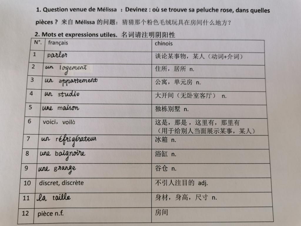 法语外教Mélissa录制系列视频《Mélissa在法国》。这一期中,她精心制作了家庭布局的微课视频。视频中,她十分用心地将一个玩具藏于家中不同的地方,让学生口头猜玩具所在,以便帮助学生温习相关词汇。课上,学生除完成词汇复习任务外,需要对自己的家进行拍摄及口头介绍,一些学生还做了精心的剪辑。学生熟练运用主要句型,发音准确,内容完整,同时加入自己生活细节,各有特色,富有生活气息。
