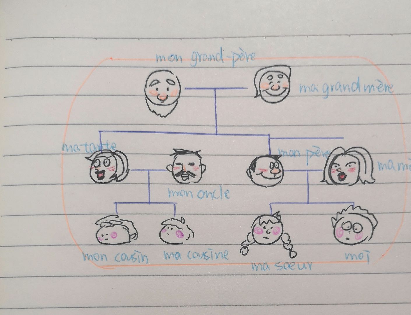 此外,法语还组织家庭成员的回顾,学生通过绘制家庭树的方式,复习相关词汇,并通过微信语音方式介绍家庭成员的姓名、年龄、职业、爱好等信息。