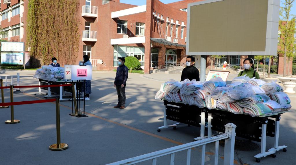 为确保教材发放过程“不聚集、无接触”,我校疫情防控领导小组制定了详细的发书方案。从工作人员的安排到领取方式的探讨,小组成员出谋划策,确保每一步都能安全有序进行,为了防止出现人群聚集,我校教材发放工作分校区、分年级、分班级、分时段在不同的校门口进行。接到方案后,各班班主任提前在班级群通知家长到校领取教材的时间、领取方式及注意事项。针对不能到校领取的学生名单,我校也提前与家长进行沟通,确定快递邮寄等其他方式做好预案。