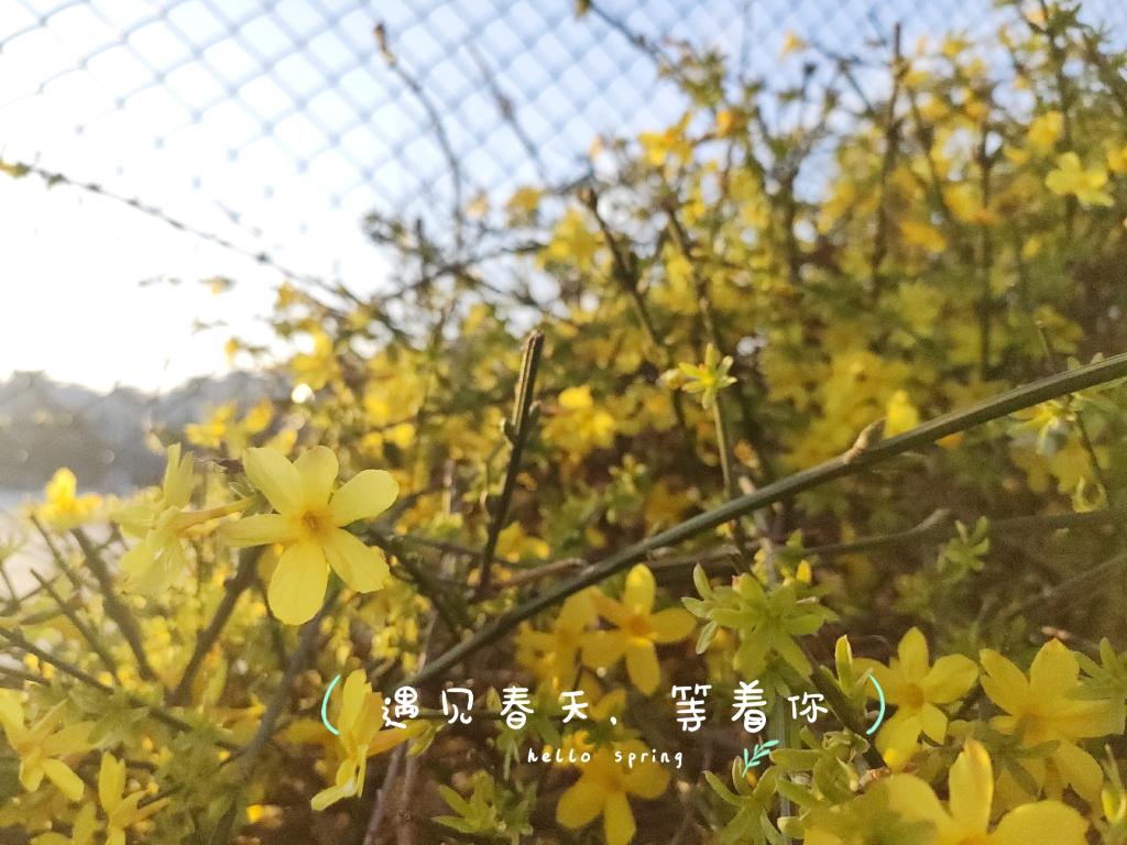 粉色的桃花、黄色的迎春花