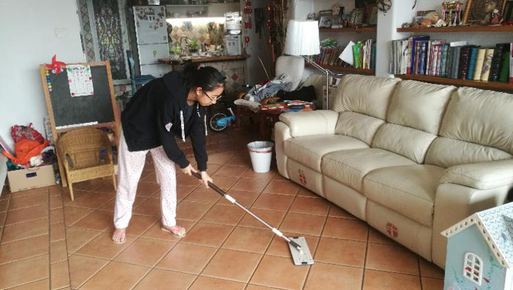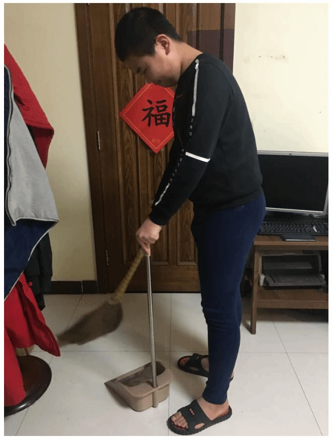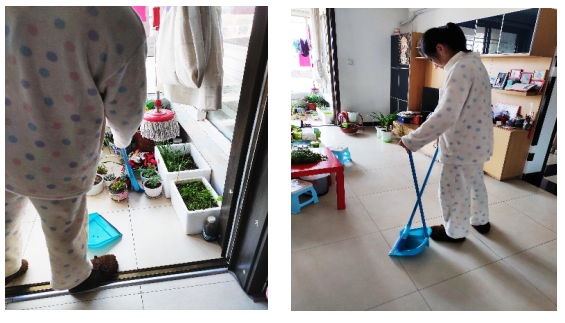 午饭和晚饭前后打扫桌面,地面等;每周日收拾房间;早上或下午如出门会帮忙倒垃圾;主动进行垃圾分类;日常生活中能够废物利用,变废为宝。