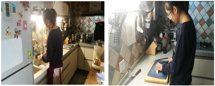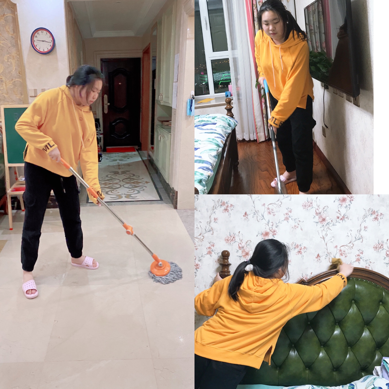 在家网络学习期间,我主动承担起家庭的快递取货、超市购买日常用品等家庭生活任务,除以上外,还帮妈妈把购买的钢铁货架组装起来,帮妈妈把阳台杂物整理整齐,阳台打扫干净。在家上网课期间,主动承担力所能及的家务活:刷碗、扫地、擦地、洗衣服,和爸爸妈妈一起照顾生病的奶奶,给奶奶端水、吃饭夹菜。