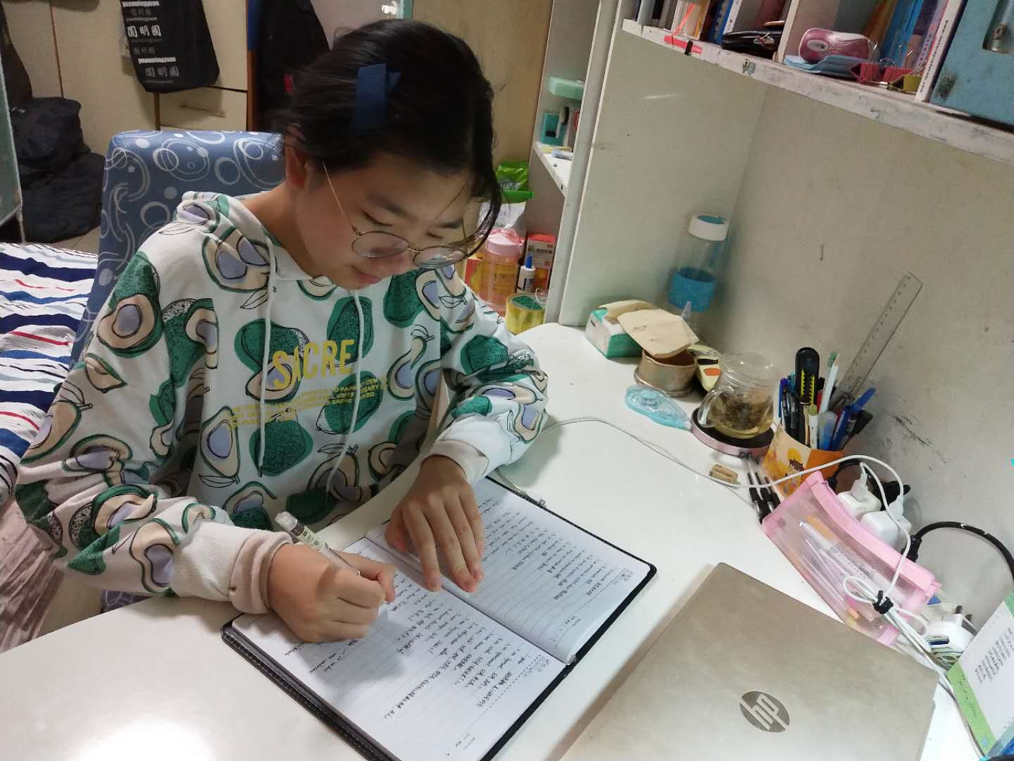 在网上学习期间,我制定了居家学习的学习日程表,并严格执行。每天准时参加线上各门课程的学习,认真听讲,及时整理笔记,做好复习和预习,并按时完成作业。在认真完成学习任务的同时也能按时完成体育老师布置的体育任务,并在小程序拍照片或视频打卡。中午休息的两个小时,我坚持每周为家人做3-5次午饭。这样的锻炼得到了家人的赞扬也增加了我的劳动技能。现在我已经能做很多家人喜欢的美食了,这样不仅丰富了餐桌,我在其中也感受到很多快乐。课余时间我会发展自己的兴趣爱好,练字、做手工等等。